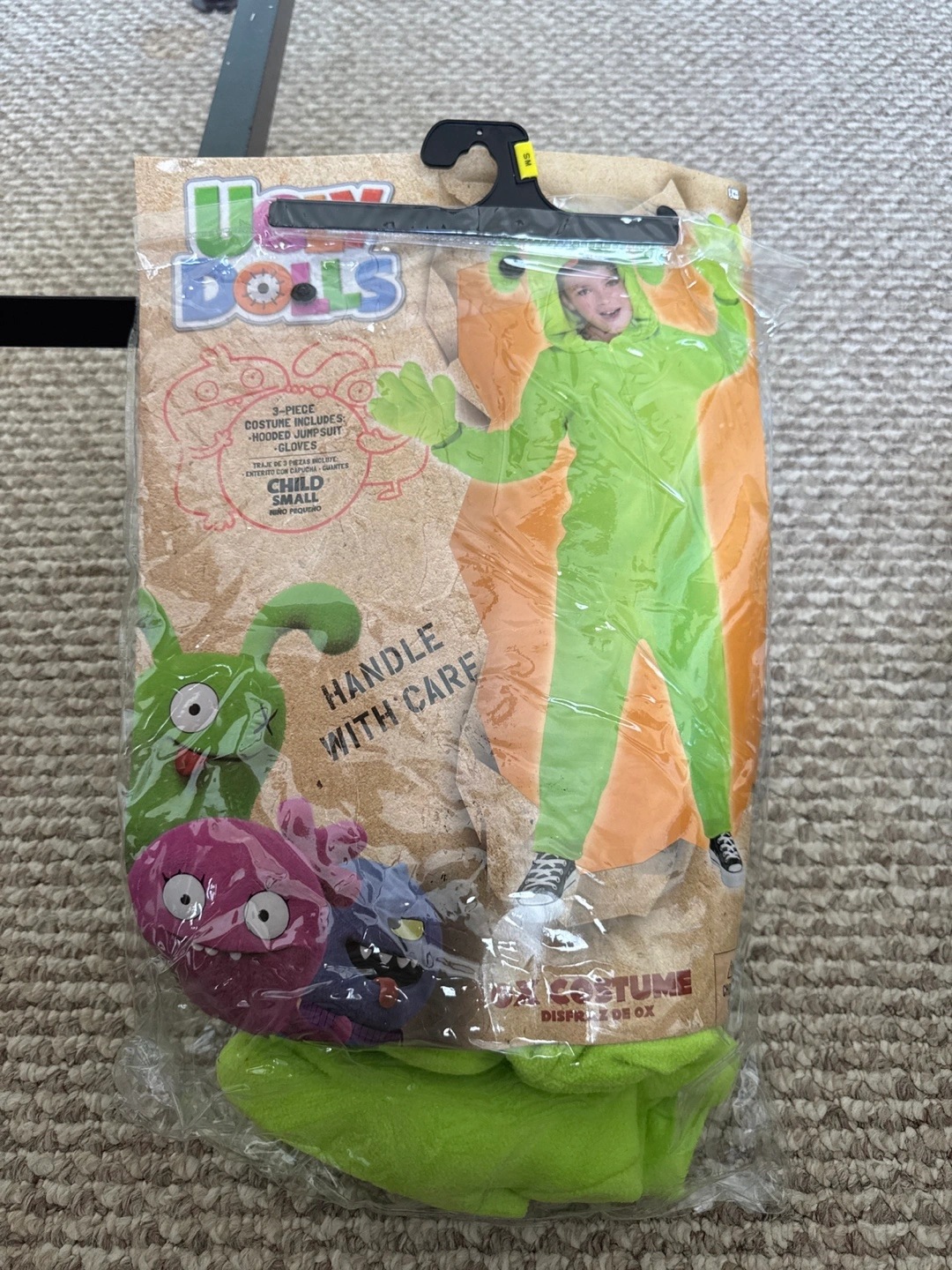 I'm selling a used , still in the package, Ugly Dolls costume for kids! It's a child's size small and includes a hooded jumpsuit and gloves. The package says it's a 3-piece costume. Perfect for dress-up or Halloween!