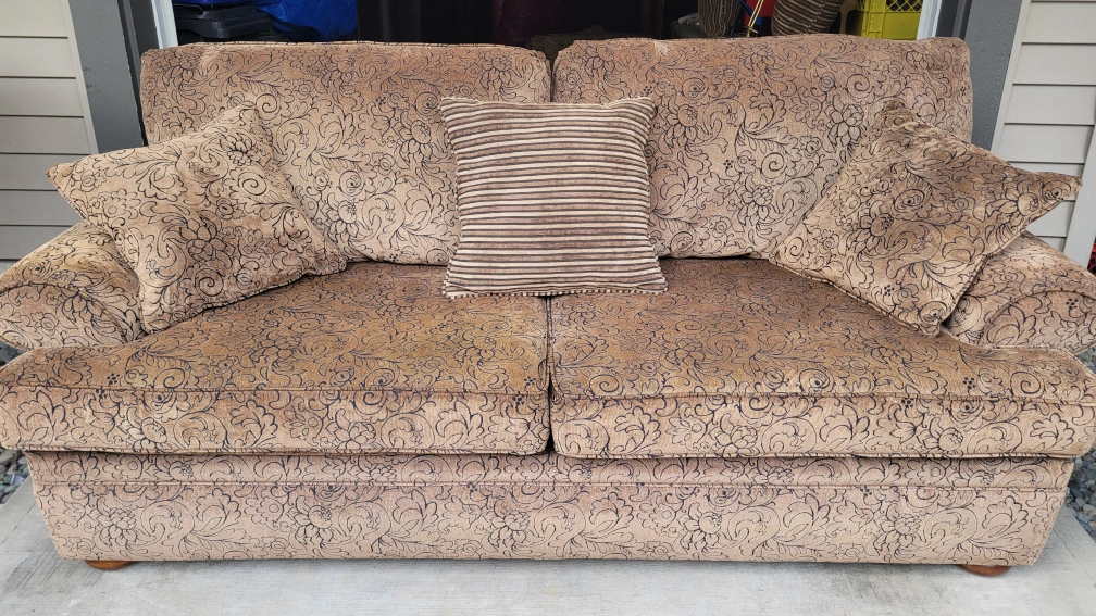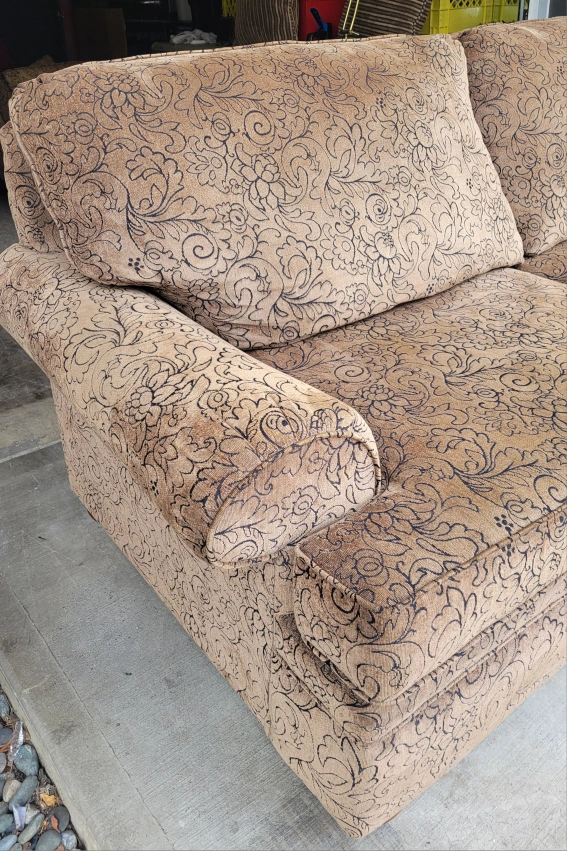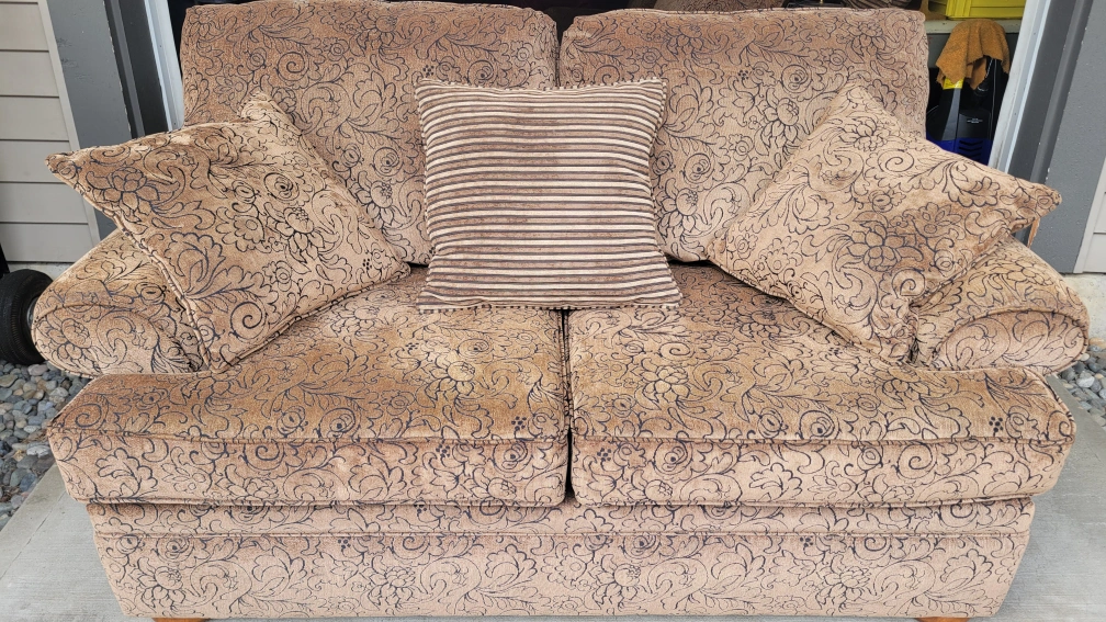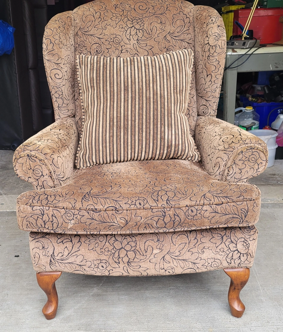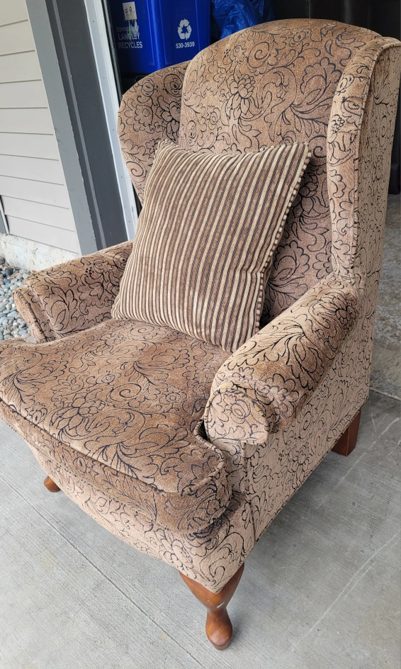 Selling this nice clean livingroom set. Asking $550 for all three pieces, including delivery. Or best offer! The set includes a Sofa, Loveseat and Wingback Chair, as well as all the (7) throw pillows. No damage or major wear issues. Everything is still in excellent clean condition. No damage, saggy spots, offensive odors or flat cushions. Comes from a very clean non smoking mature home with no children or pets. Update your furniture and change the whole look of your space! FREE DELIVERY included with purchase OR Can be picked up anytime in the Langley Township area near Home Depot