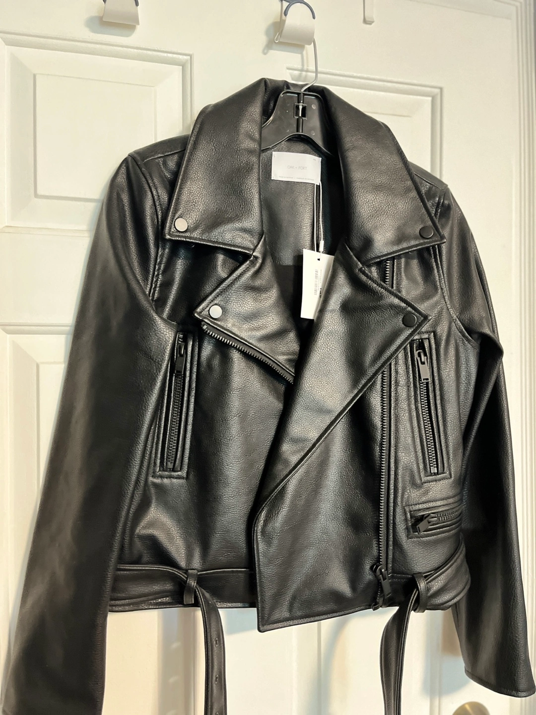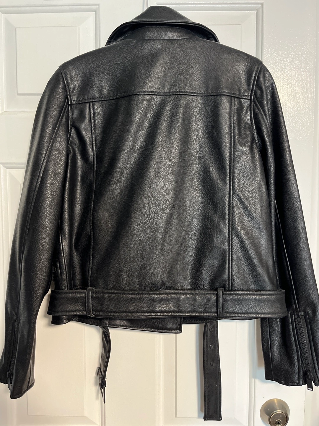 Here's a stylish Oak + Fort black faux leather jacket in size M! Originally bought for $188