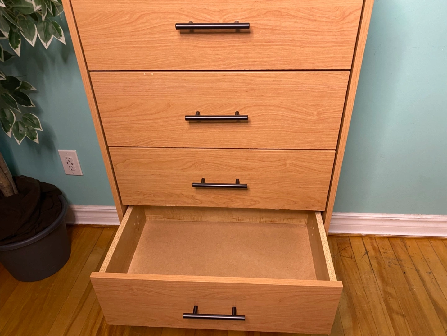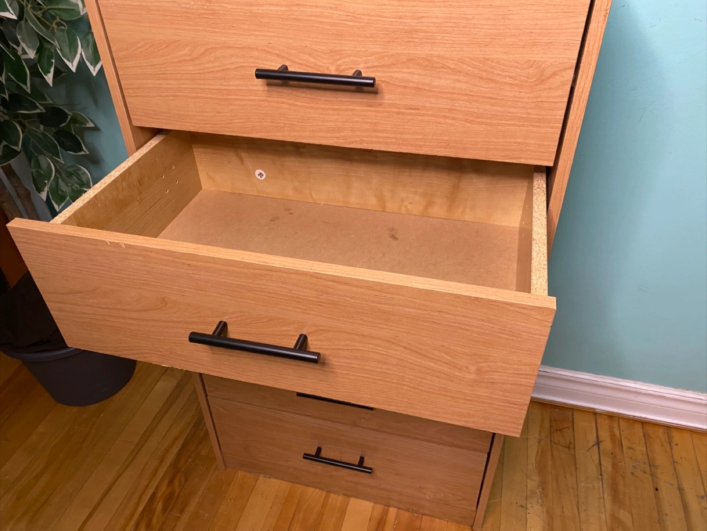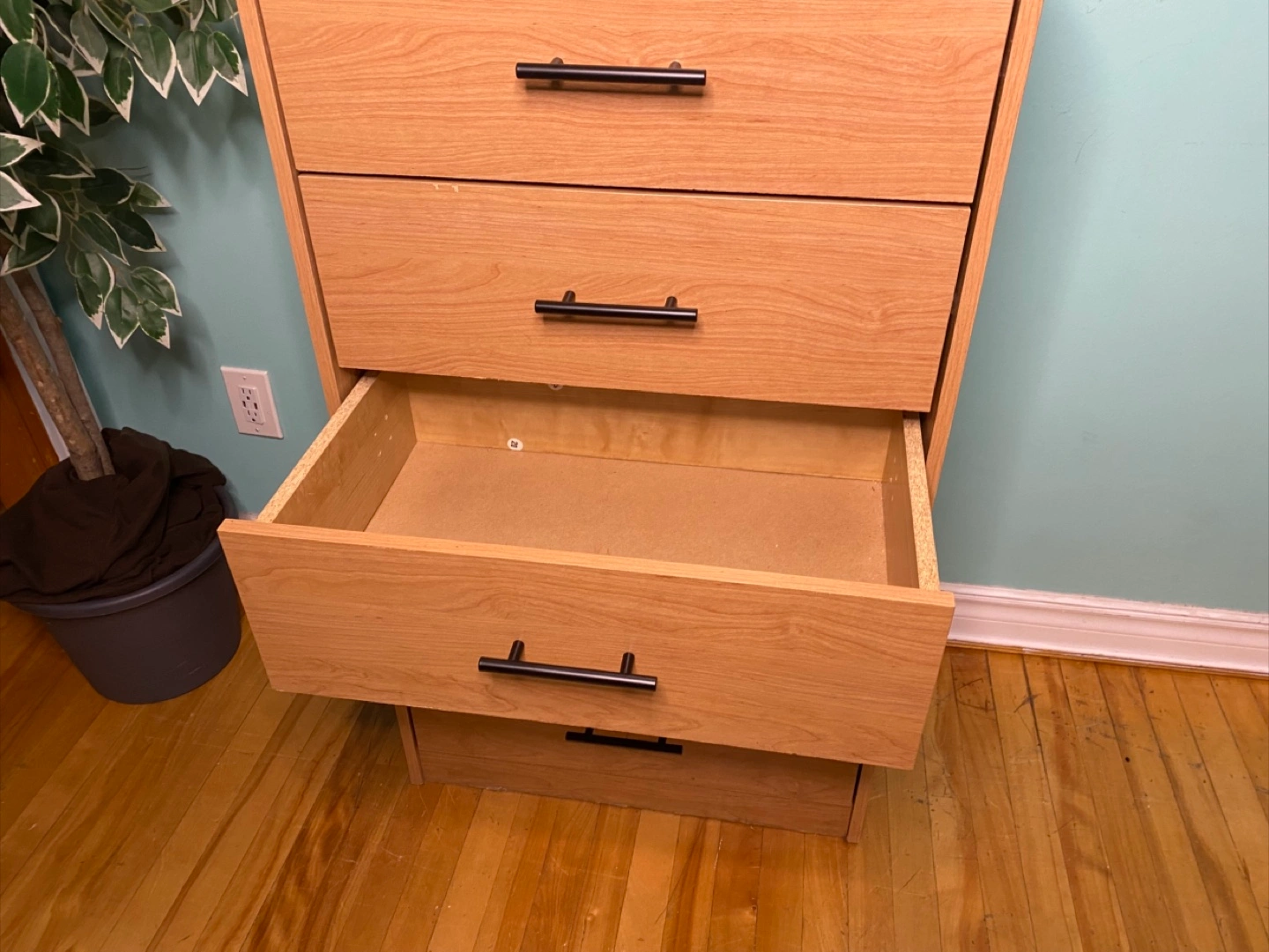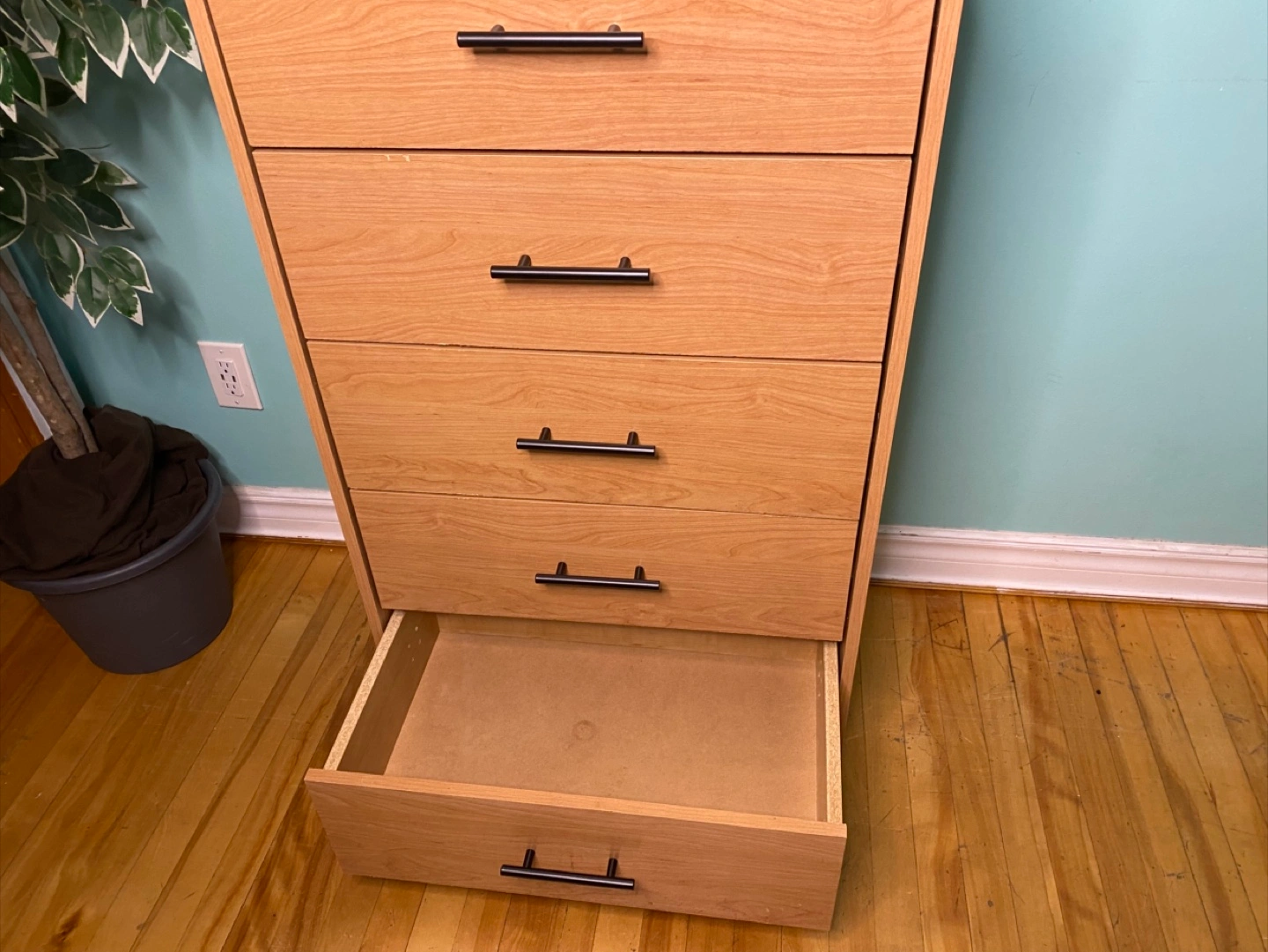 Tall dresser in great shape. Modern styling. All the drawers retract smoothly without any issues. All the drawers are clean. Smoke-free / pet-free with no odours. Delivery is included in the price, available throughout HRM. Right to refuse on delivery, you’re encouraged to check out and try out the dresser on delivery. $150 Exact Measurements: Height: 43.85 inches (or 3 FT & 7.85 inches). Width: 25 inches (or 2 FT & 1 inch). Depth: 15.75 inches (or 1 FT & 3.75 inches).