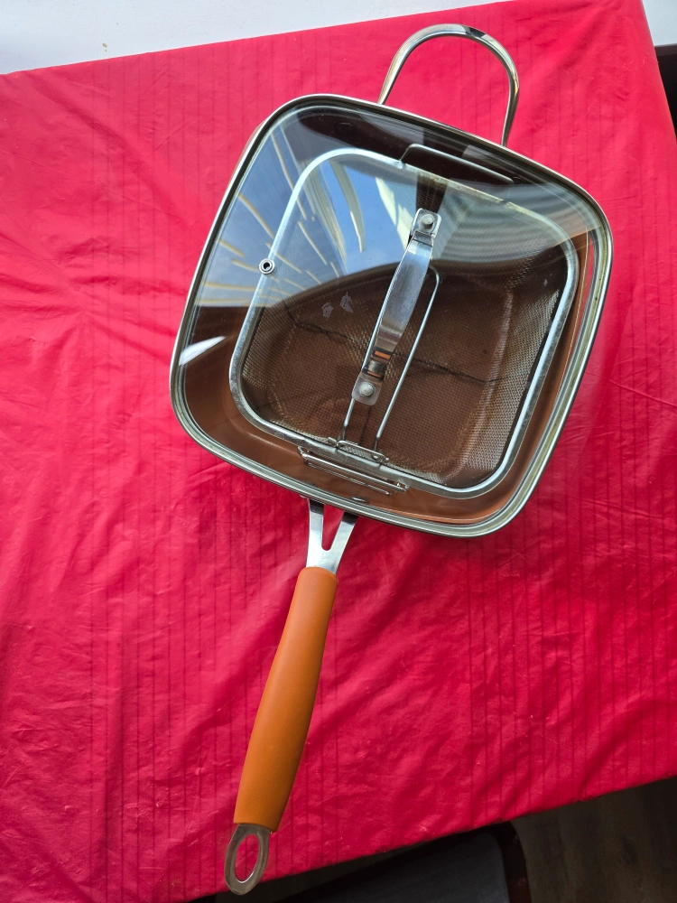 Selling a Copper Chef fry pan that comes with a basket and lid. Great for frying up your favourite foods! The pan is in good condition and ready for a new home. Perfect for making crispy fries or delicious tempura right in your own kitchen