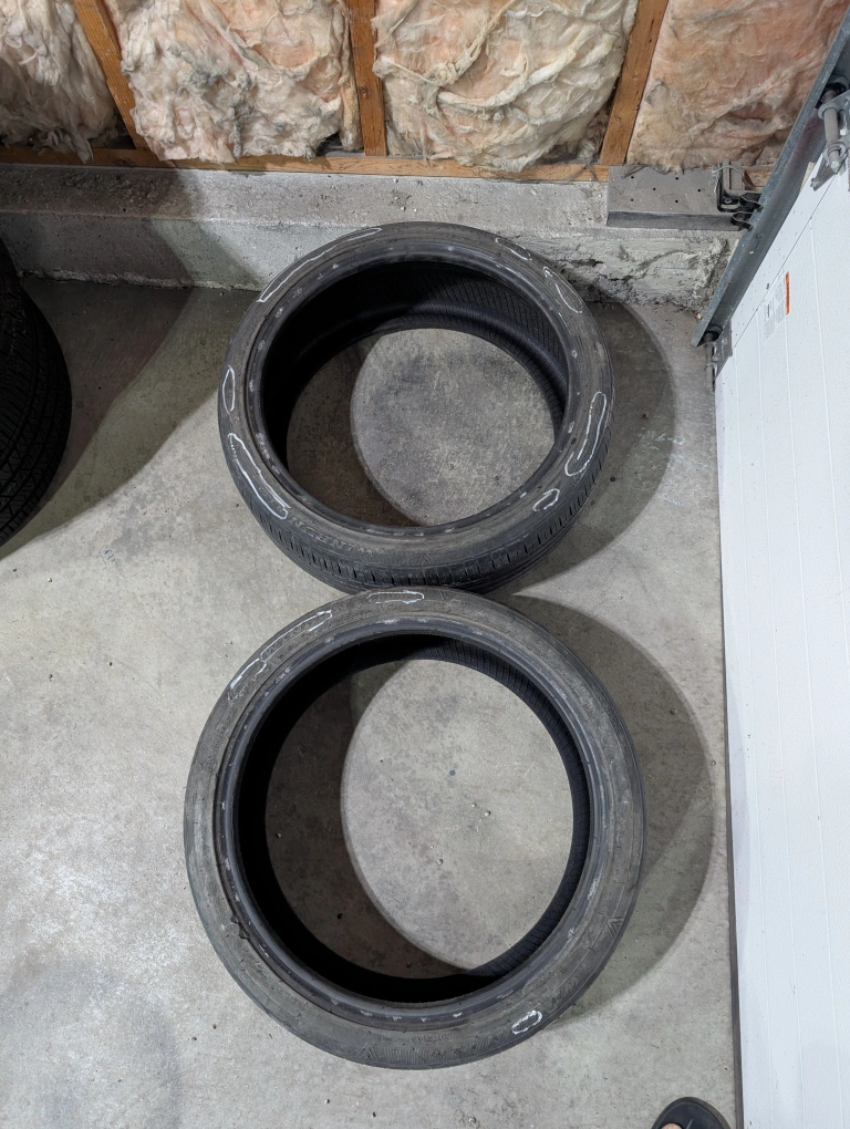 (2)-225/40Zr19 Winrun R330 All Season Tires *READ AD!* 2 Tires Only No Rims 6-7/32nds Of Tread Left Tires may or may not be usable ask your mechanic Tires hold air when on rims but have some sidewall cracking See pictures Sold as is where is $100.00 Located Near Concordia And Lagimodiere (#A20)
