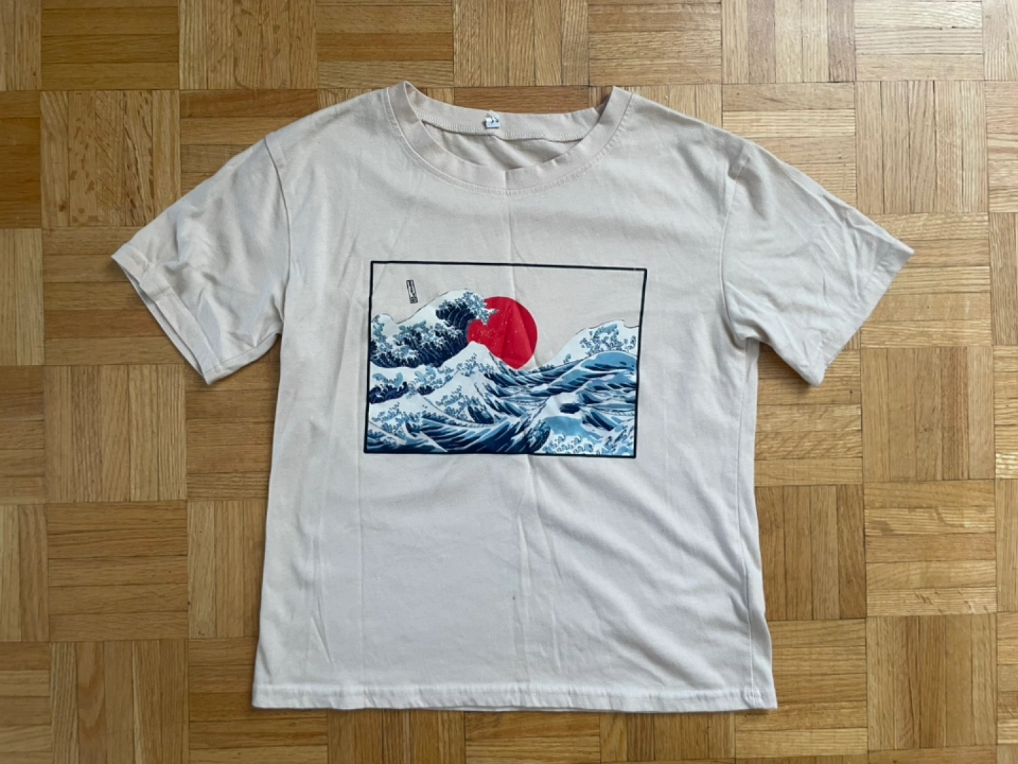 Cute t-shirt with a Japanese wave print. It's in great condition and ready for a new home!