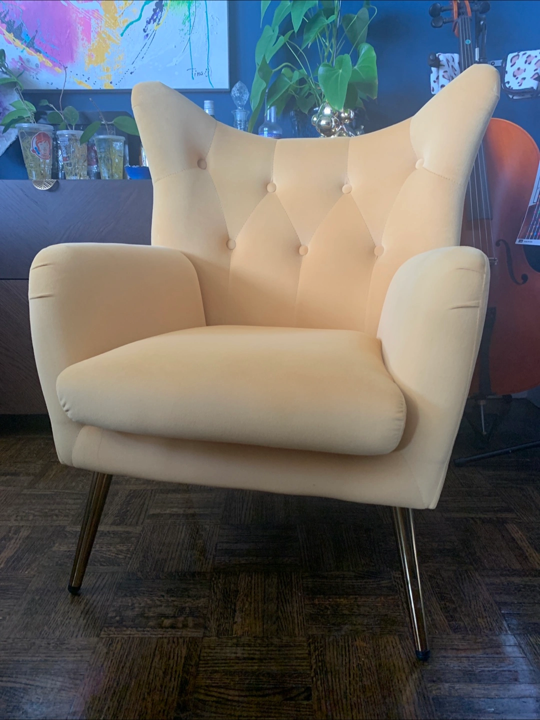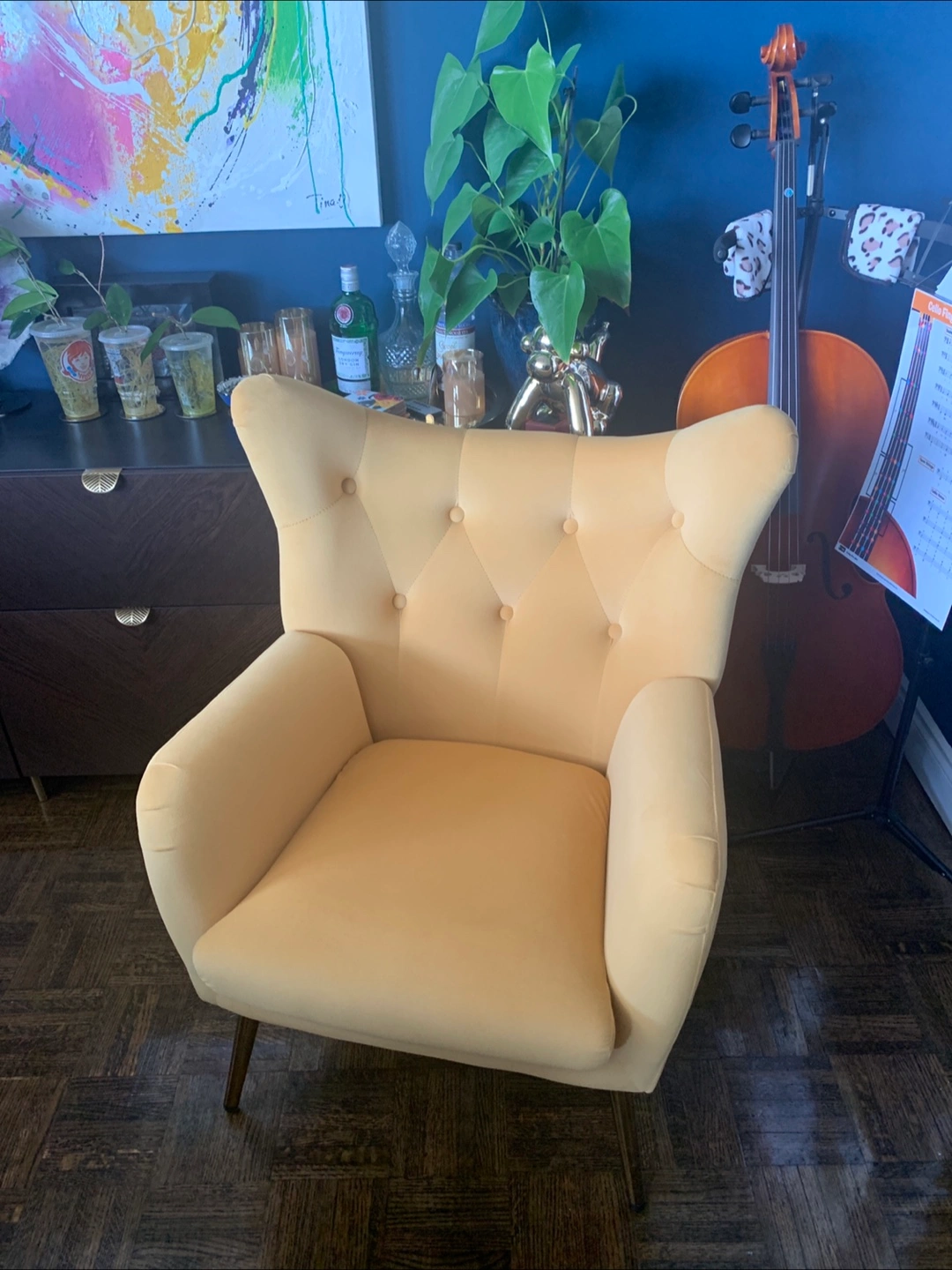Selling a stylish yellow (mustard yellow) velvet accent chair. Like brand new and would look lovely in any living room or bedroom. Must pick up. Cash only. Open to negotiate.