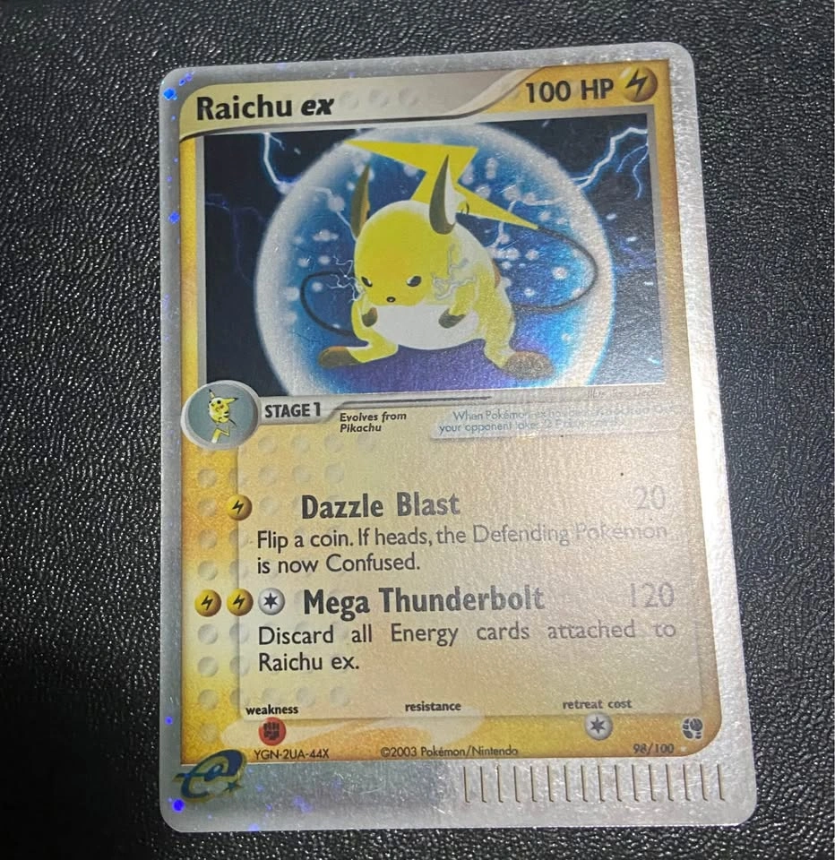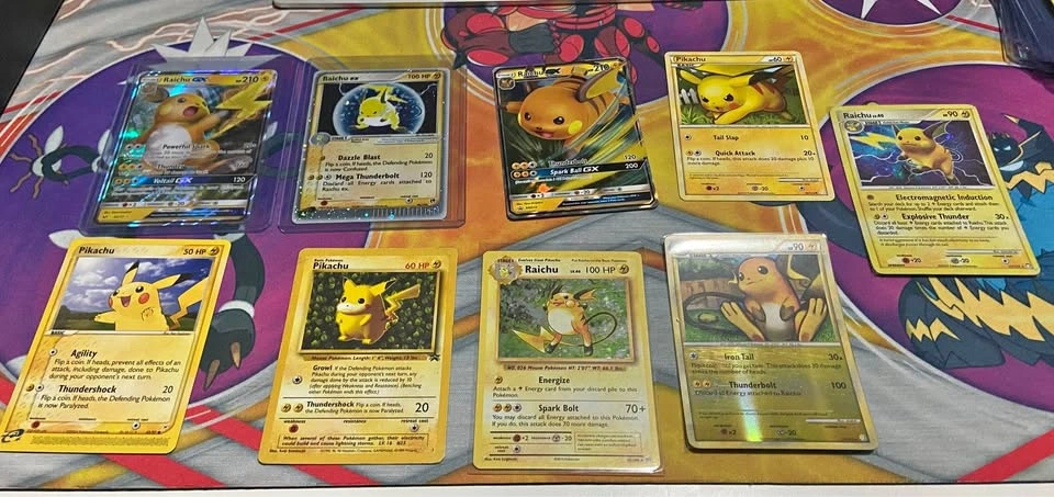 All near mint unless otherwise indicated below. All for $230 or individually priced below: Raichu GX 29/73 $5 Raichu ex 98/100 $150 Raichu GX sm213 (6 of these) $4 each Pikachu 43/95 $40 Pikachu 1/53 MP $15 Raichu 36/108 $7 Raichu 10/123 $30 Raichu 15/123 $5 MP No trades. Minimum $10 purchase for meetup.
