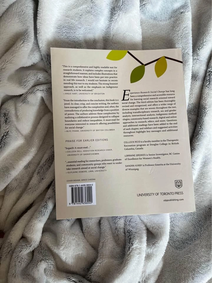 Experience Research Social Change: Critical Methods, Third Edition Book by Colleen Reid, Lorraine Greaves, and Sandra Kirby ISBN-10: 1442636041 ISBN-13: 978-1442636040 Brand new condition.