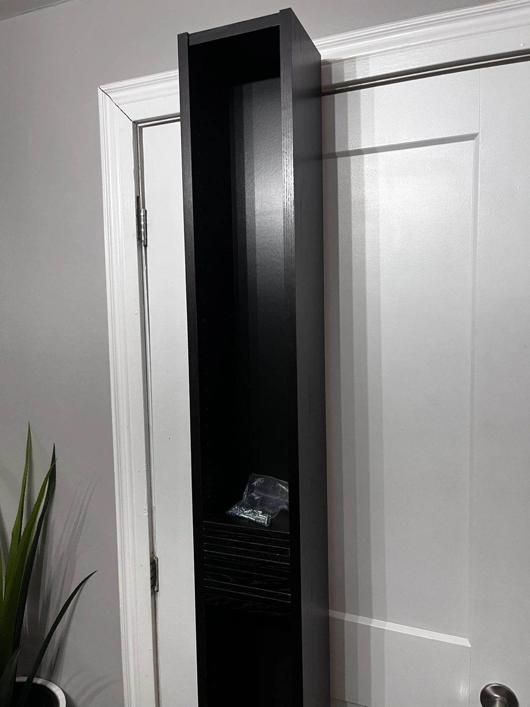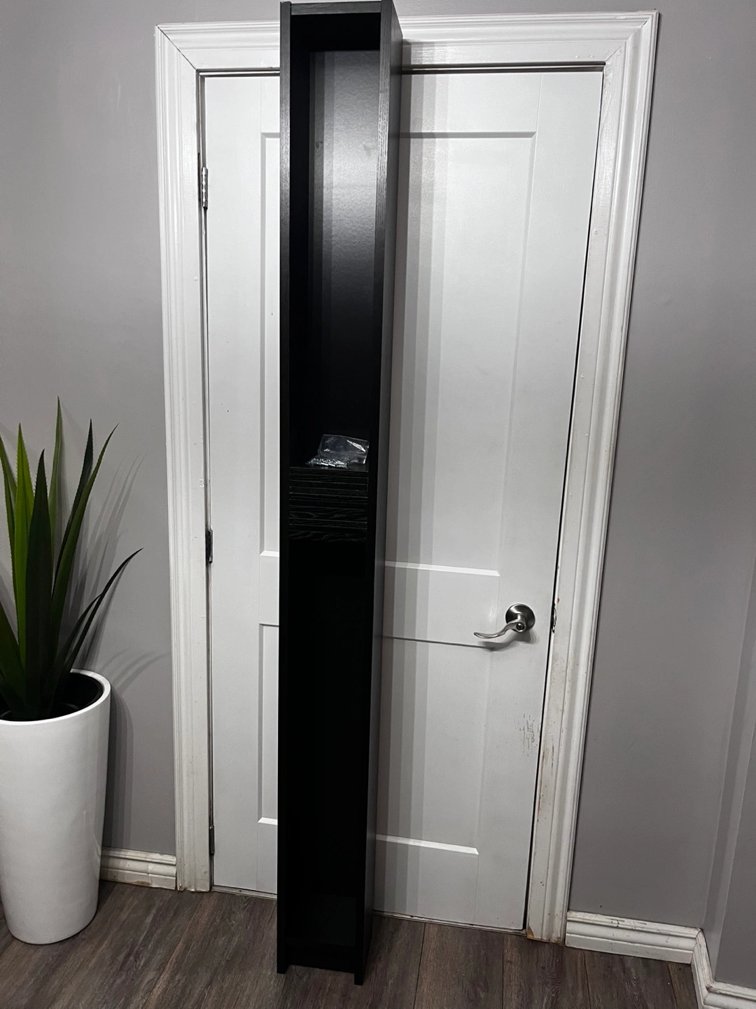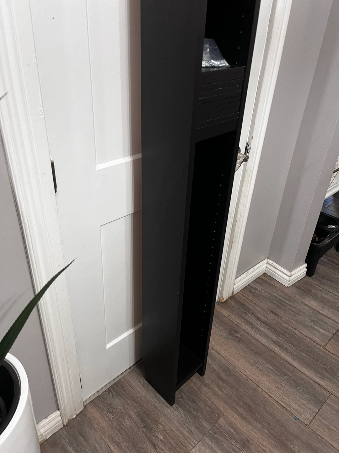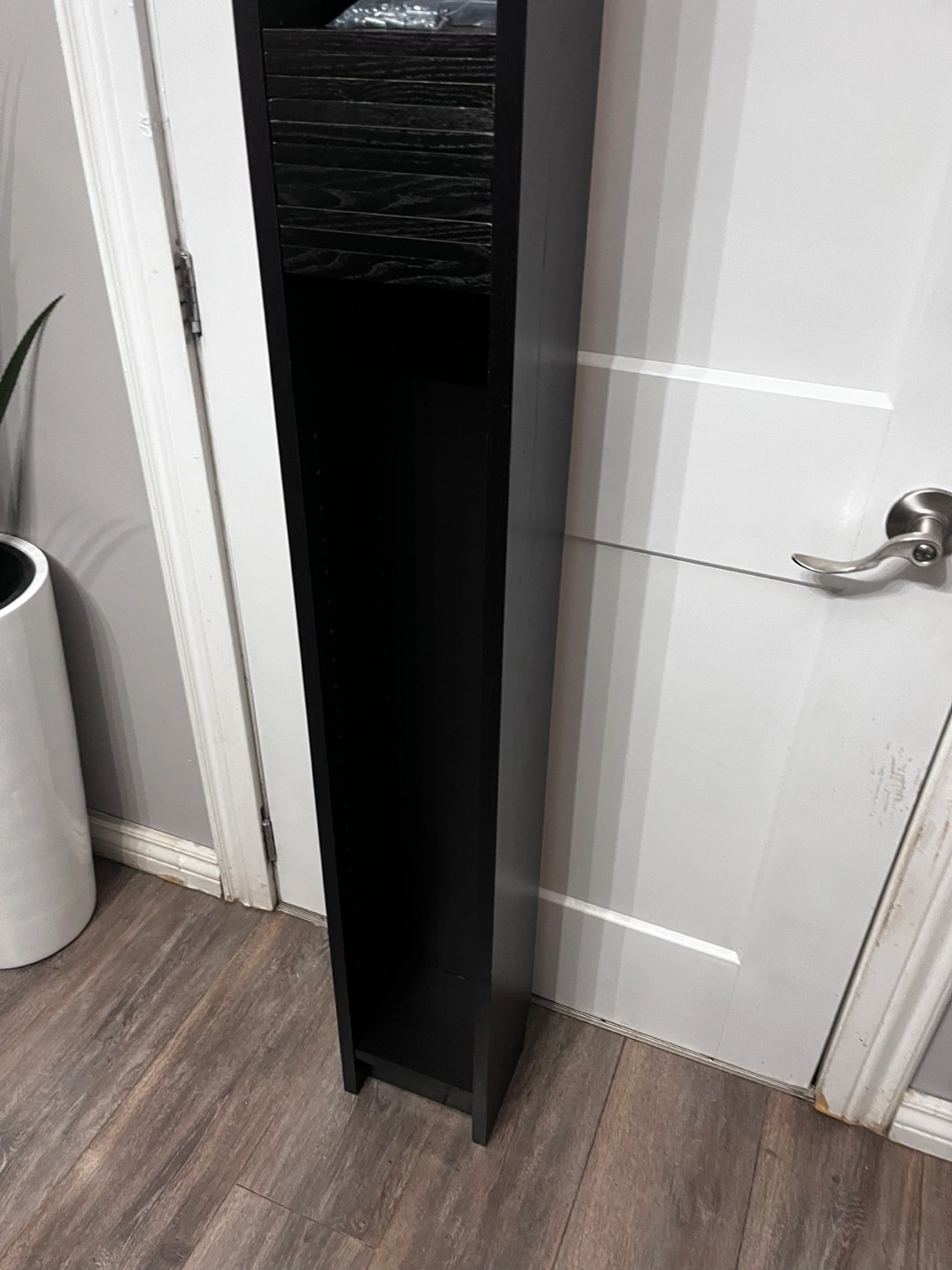 IKEA media tower. Billy /Benno. Dark brown/black. Great for books/ cds/dvds/ display items. Measures at 79.5βH x 6.75β D x 8β W. One fixed shelf in middle plus 10 adjustable shelves. Pick up only. Closest intersection is Jane St and Eglinton Ave.