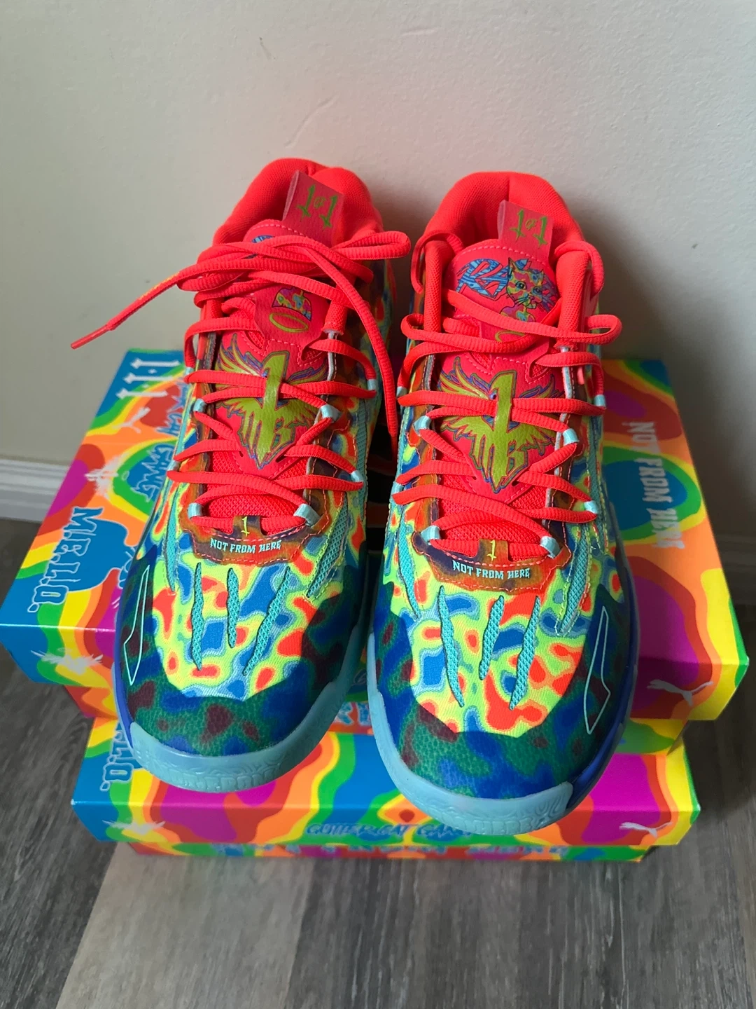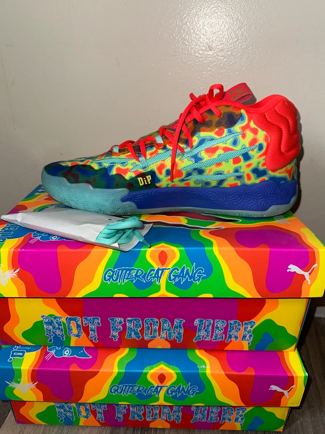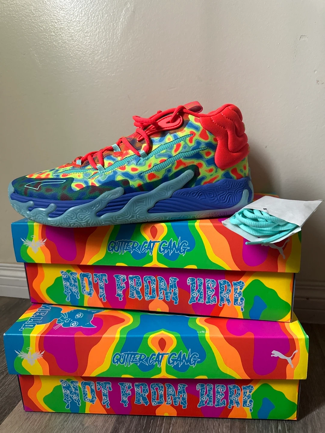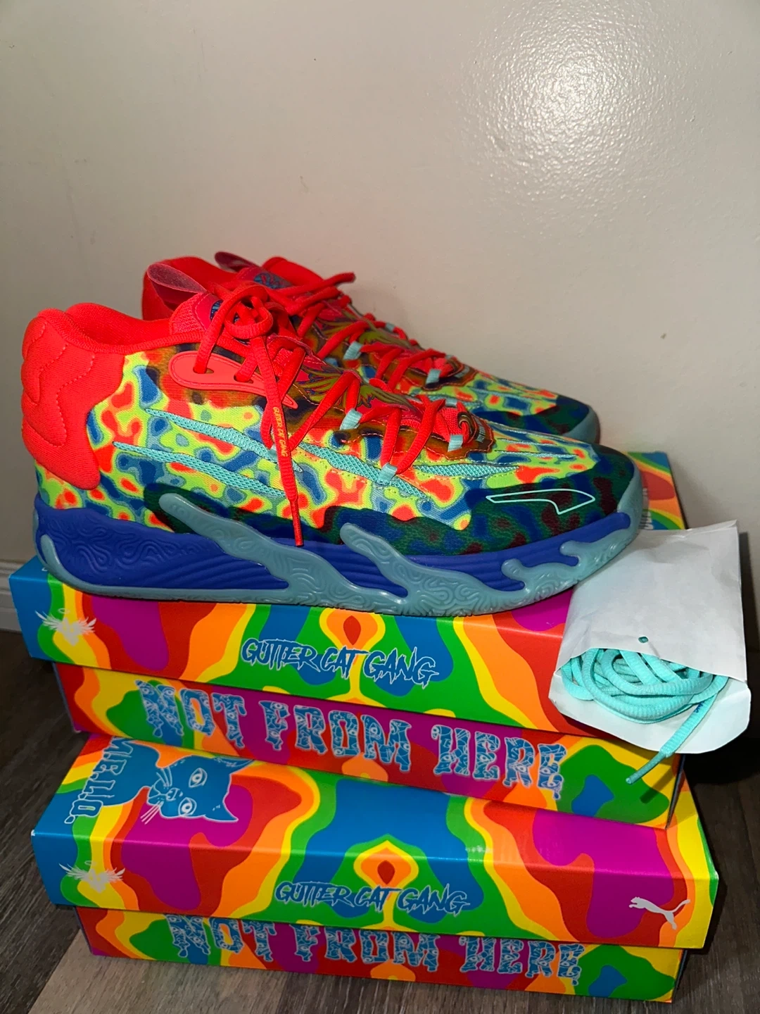 Selling a pair of Puma MB.02 Gutter Cat Gang shoes. They come with the original box and an extra pair of laces. These shoes are super eye-catching and in great shape!