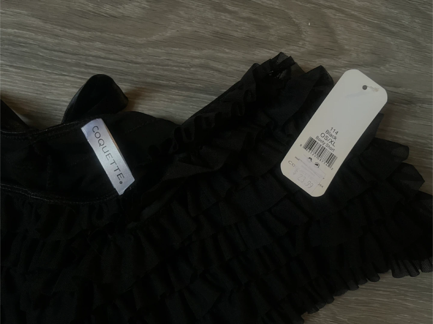 Cute black ruffle shorts from Coquette! They're a size XL and would be a fun addition to your wardrobe. The original price was $23.99 but didn’t realize i grabbed the wrong size! Never worn.