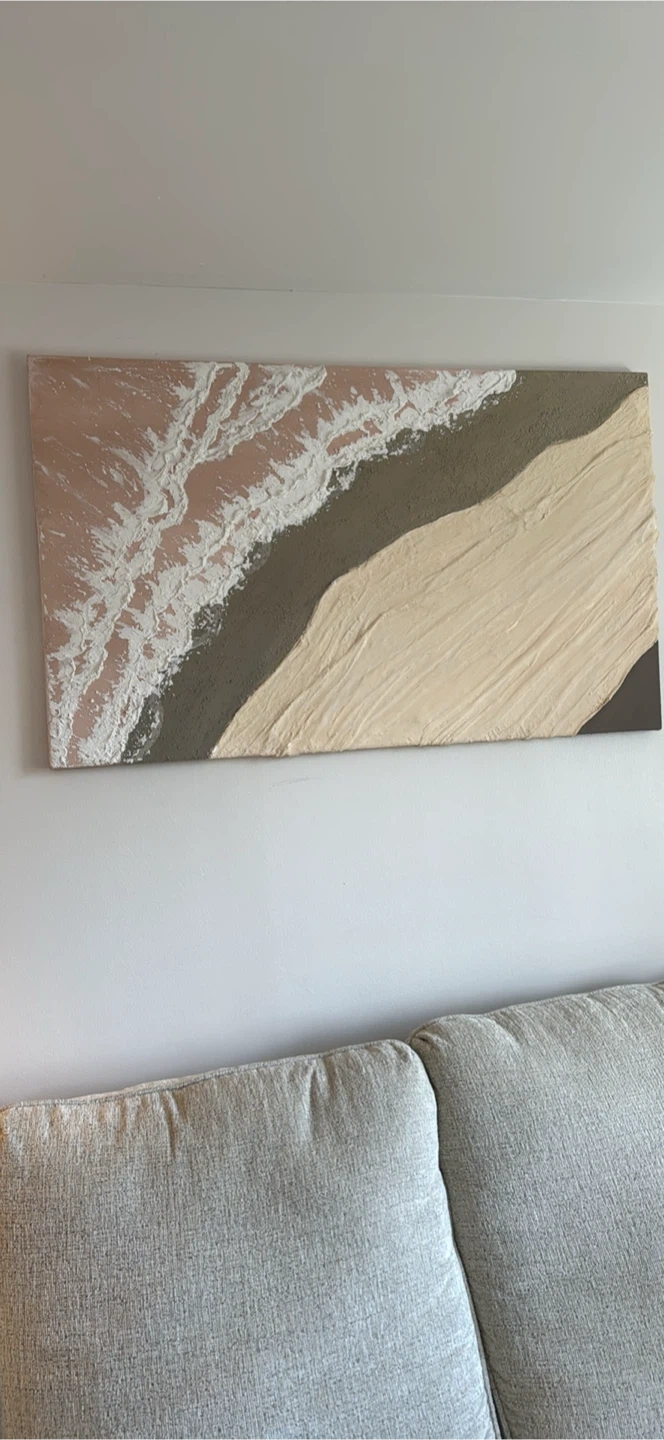 This is a unique textured painting of a beach scene. The colours are neutral and calming, perfect for any room in your home!