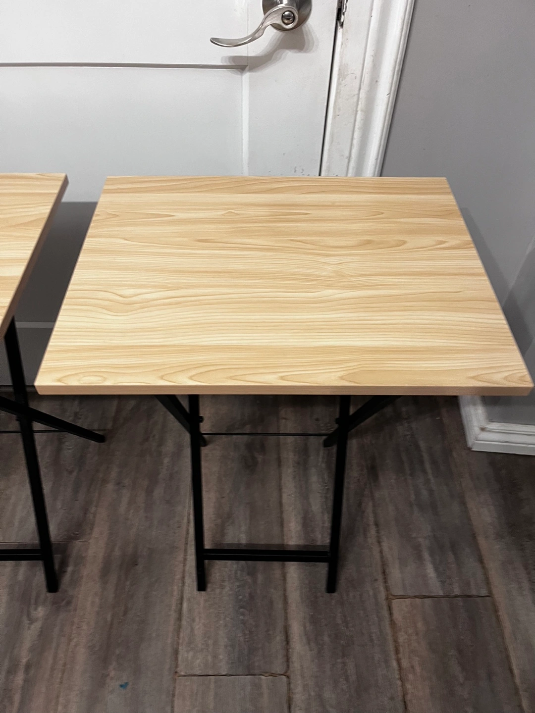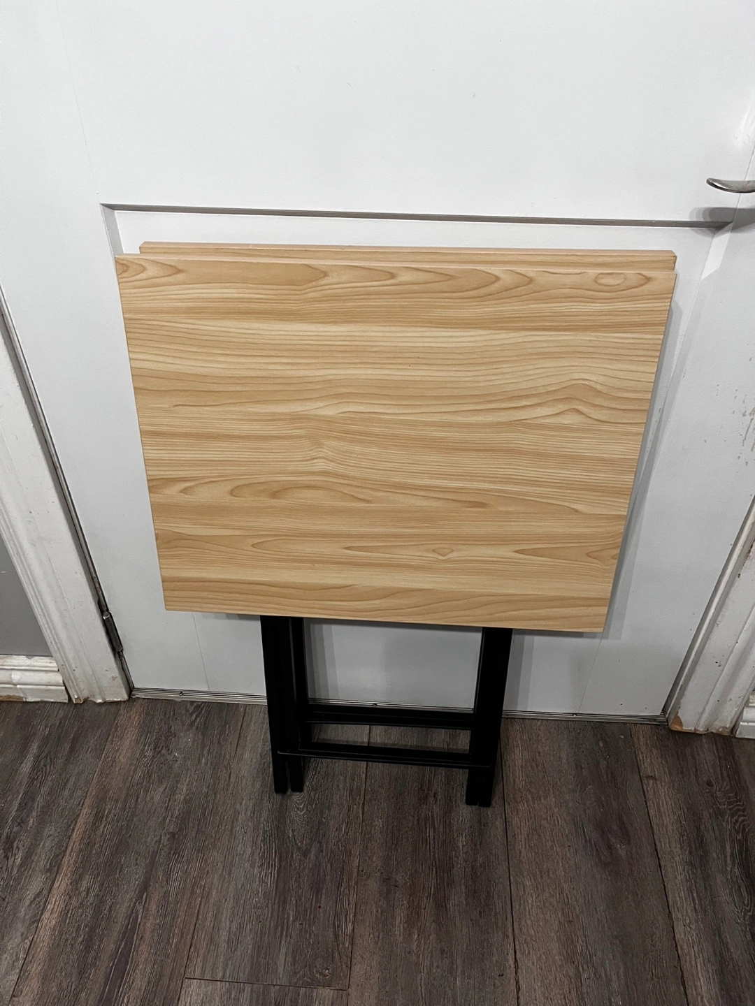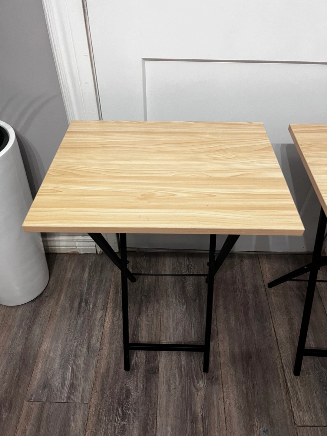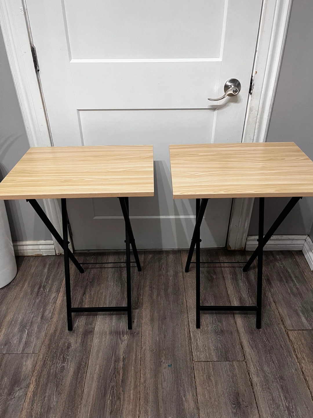 Selling a set of two folding TV tray tables! They're in great shape and super handy for snacks, working from the couch, or whatever you need a little table for. Easy to fold up and store when you're not using them Measures at 15β D x 19β W x 25.5βH. Pick up only. Closest intersection is Jane st and Eglinton Ave.
