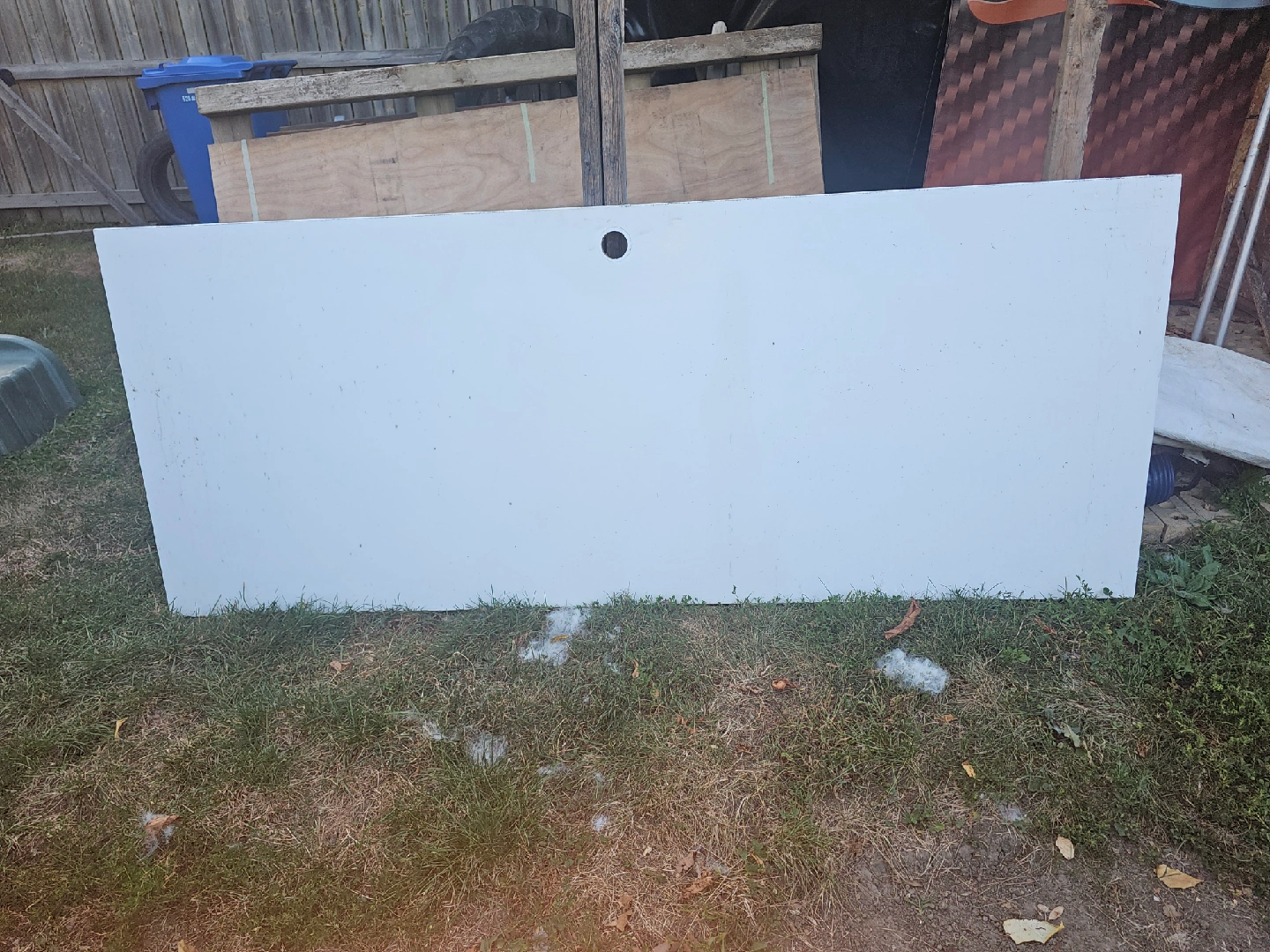 Selling a white door slab. It has a hole for a door knob. Great for a home renovation project!