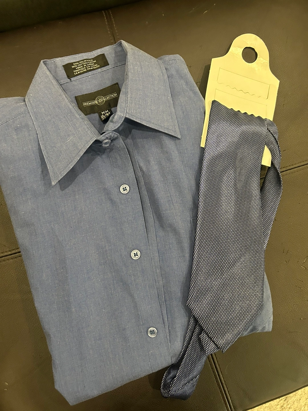 I'm selling a Premiere Collection dress shirt and tie set. The shirt is size M/M (16-16 1/2, 33-34). It's a lovely colour. Perfect for work or special occasion selling dress shirt and tie together for only 10 great savings