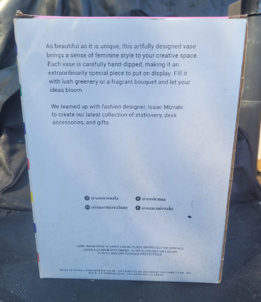This artfully designed vase brings a sense of feminine style to your creative space. Each vase is carefully hand-dipped, making it an extraordinarily special piece to put on display. It's in excellent condition and comes with the original box.