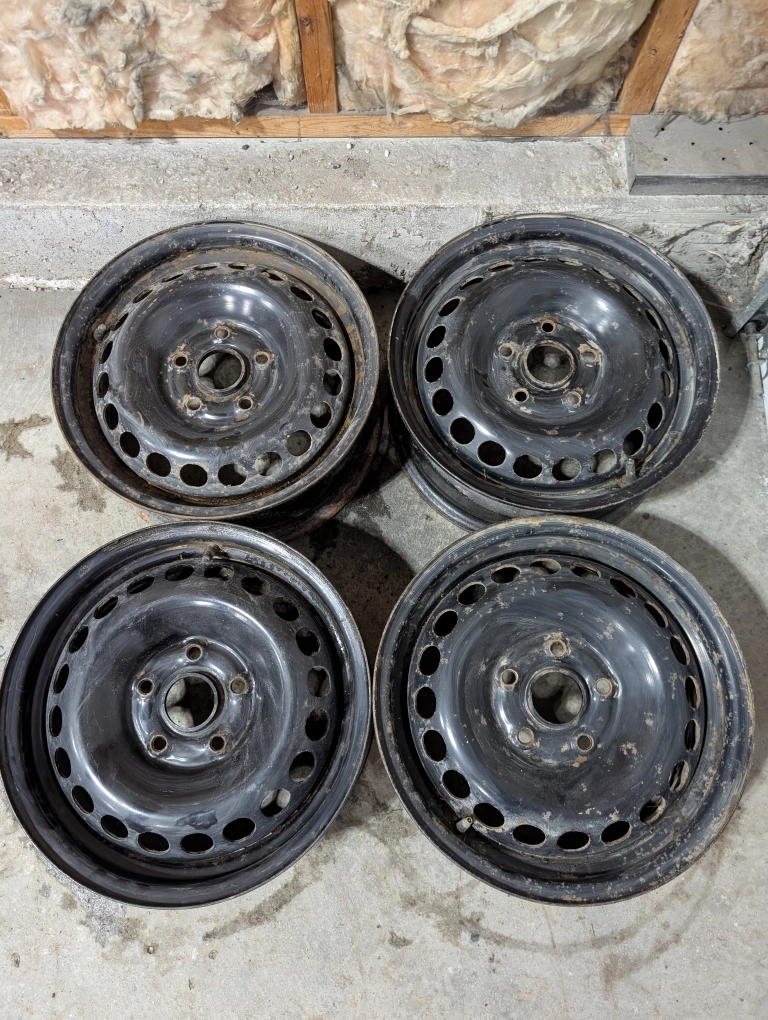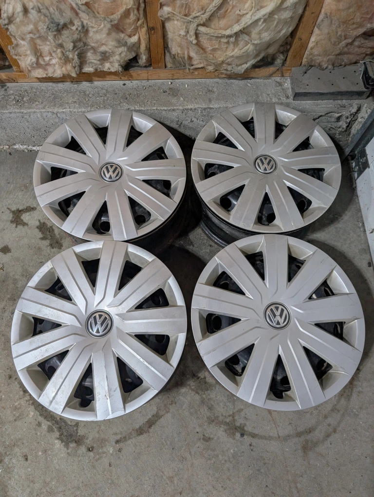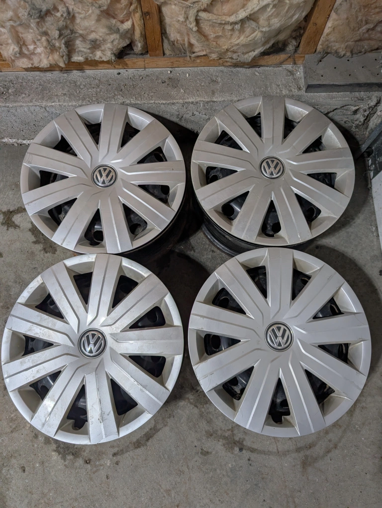 (4)-15 Inch Steel Rims/Wheel Covers for Volkswagen 5x112 These rims will fit many models of Volkswagen go to www.wheel-size.com or ask me if these will fit your vehicle Bolt Pattern 5x112 Center Bore 57.1 Rim 15x6 Wheel covers in good shape Two little cracks still useable $220.00 Obo Located Near Concordia and Lagimodiere (#17)