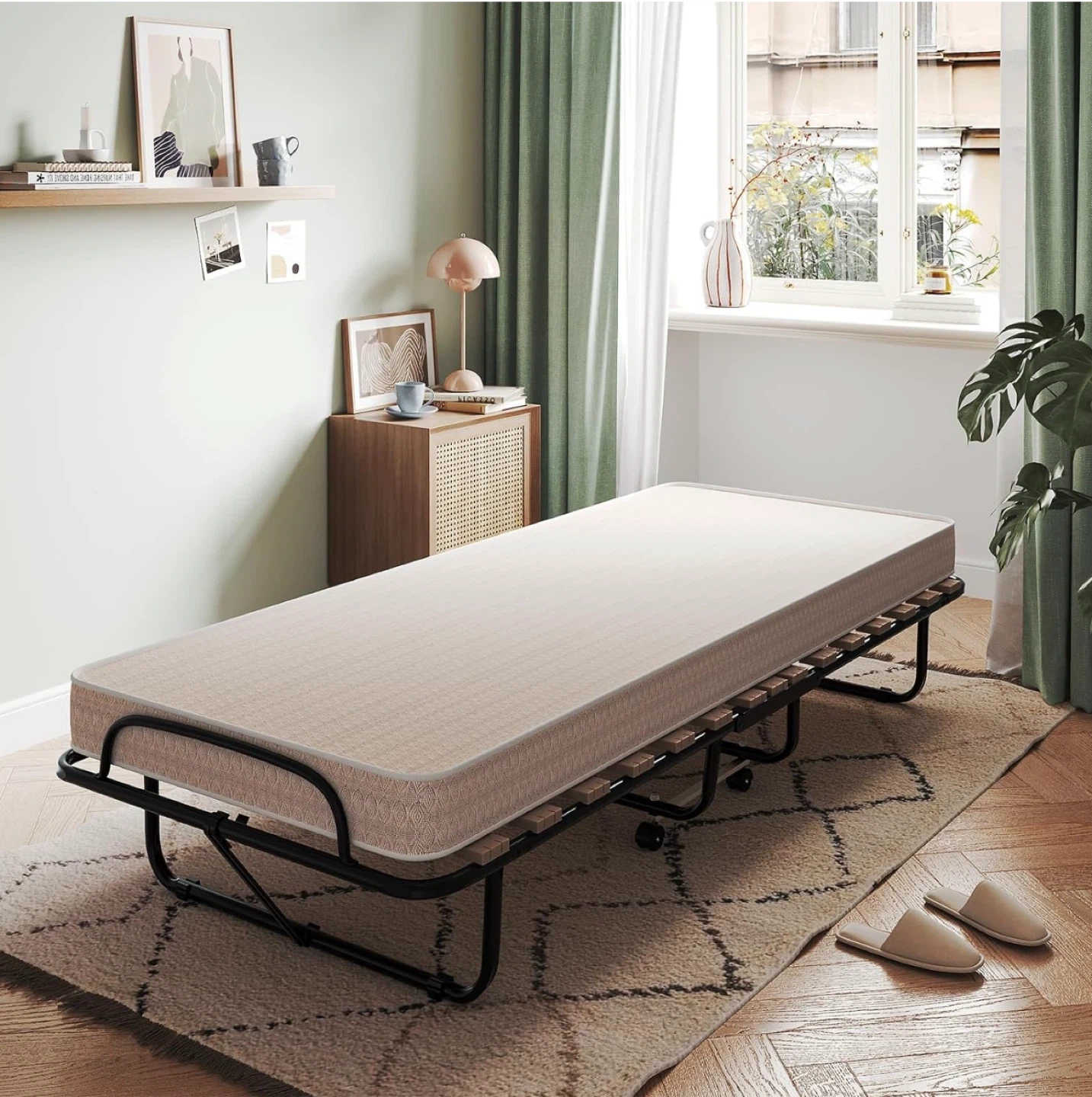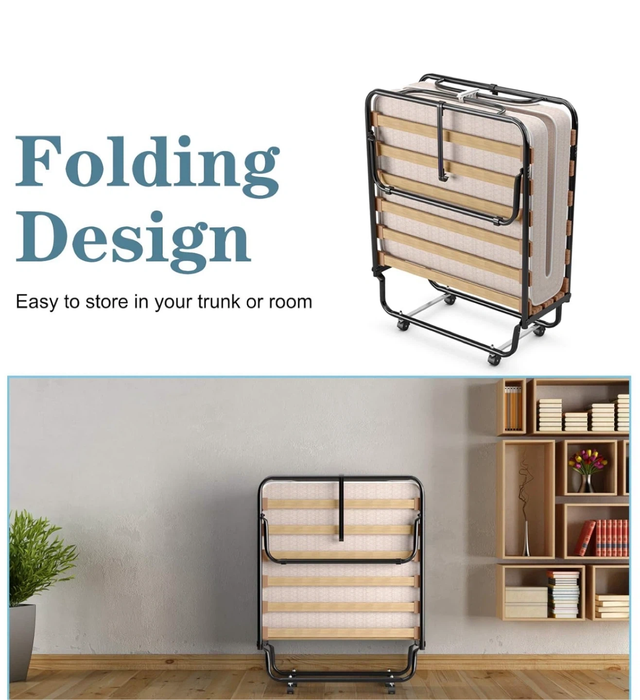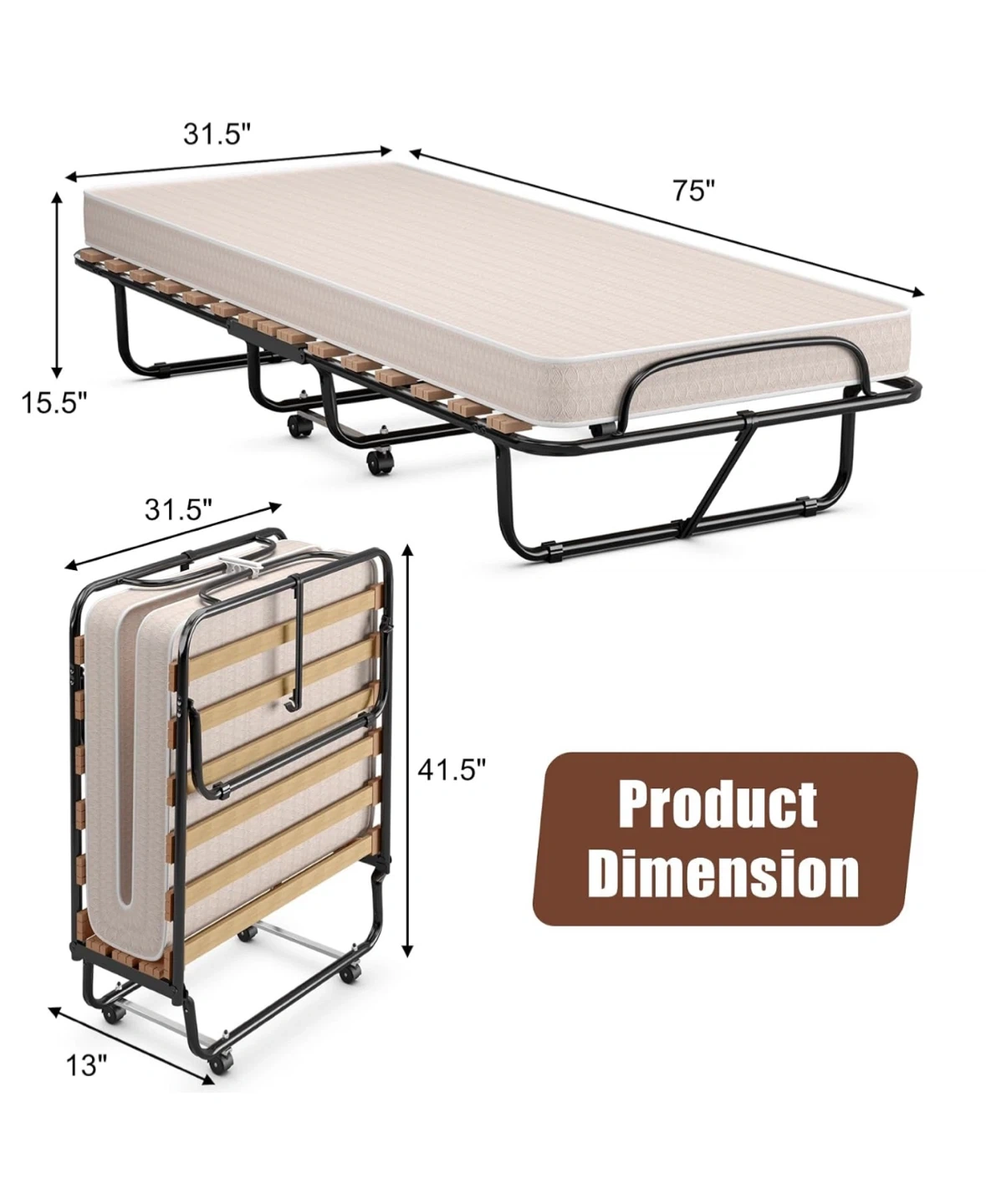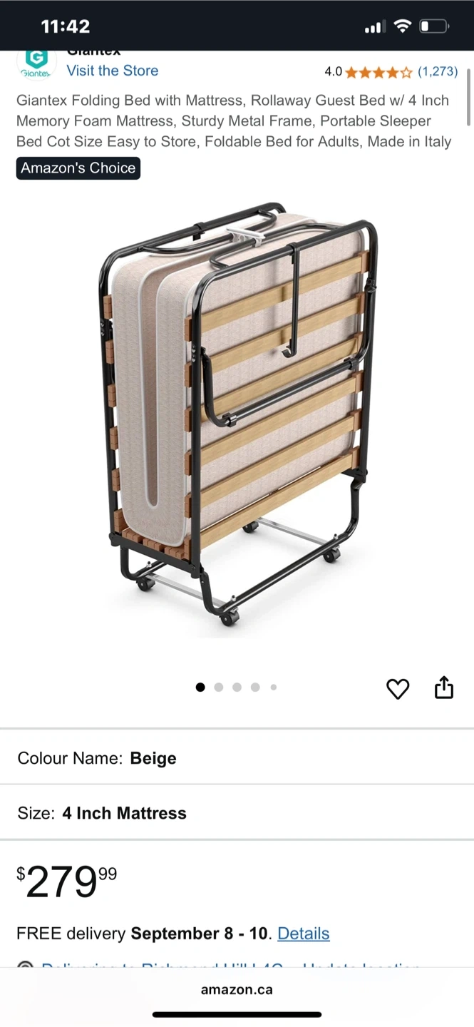 Selling a Giantex folding bed with a 4-inch memory foam mattress! It's perfect as a guest bed and easy to store. The dimensions are 31.5" x 75" when open and 31.5" x 13" x 41.5" when folded. I bought this for $279.99