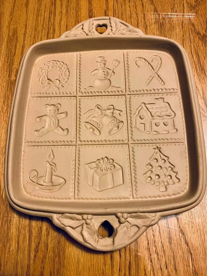 Hill Design Art Christmas Brown Bag cookie stoneware mold. 8.5”x10.75” in great condition. PRICE is FIRM.