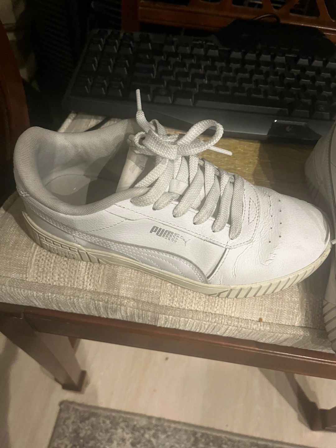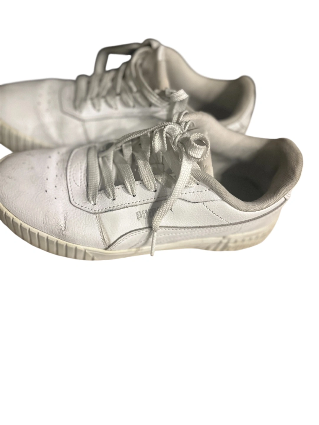 Selling a pair of Puma Cali sneakers in white. They're in used condition, as you can see in the pictures. The size is a women's 7.5 (US/CA). Great for everyday wear!