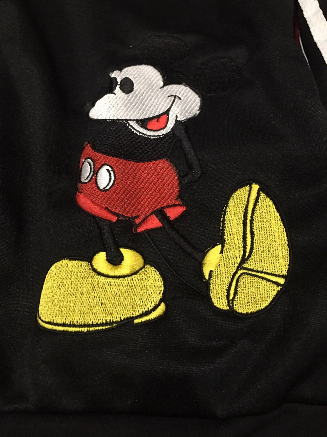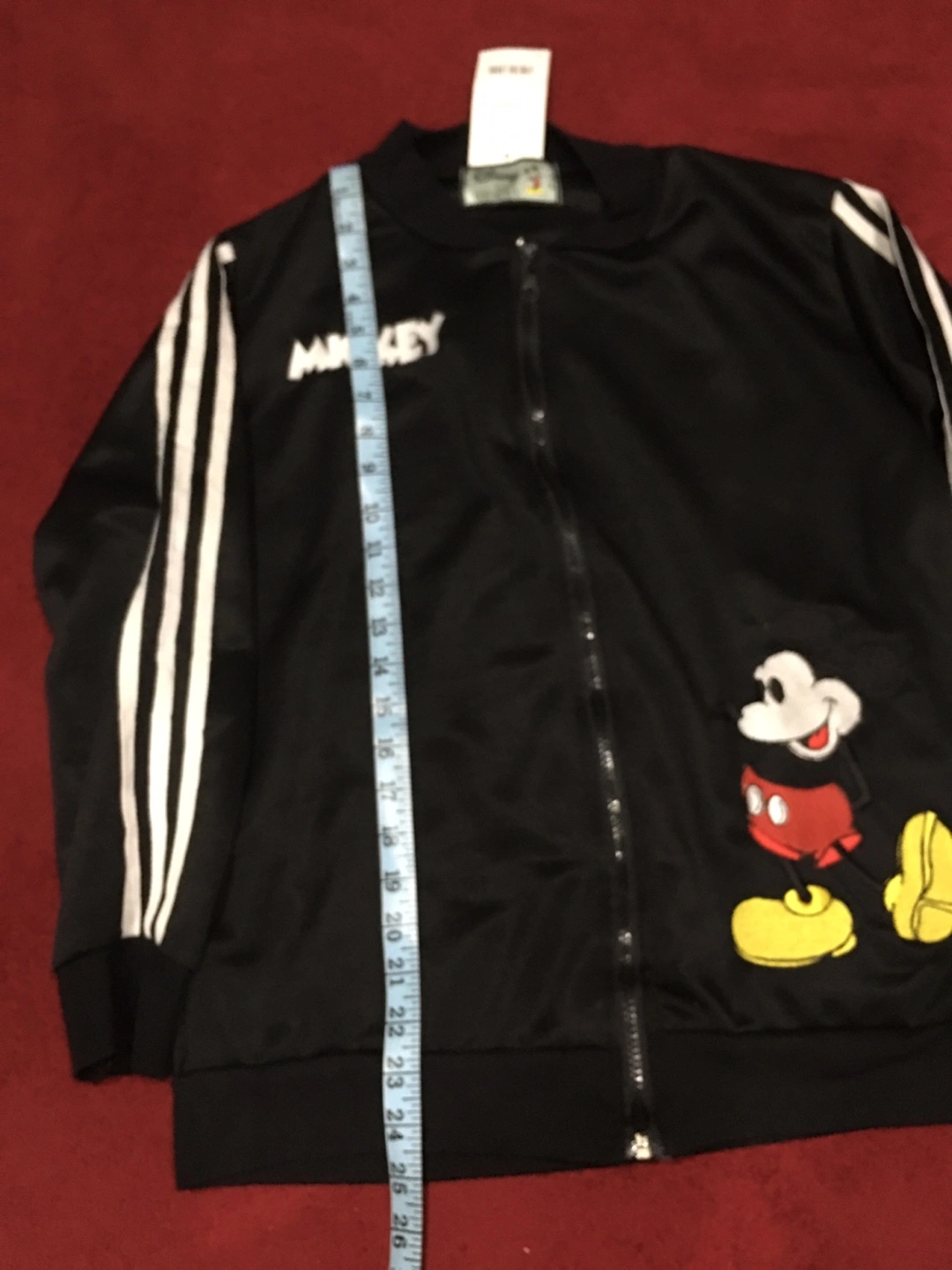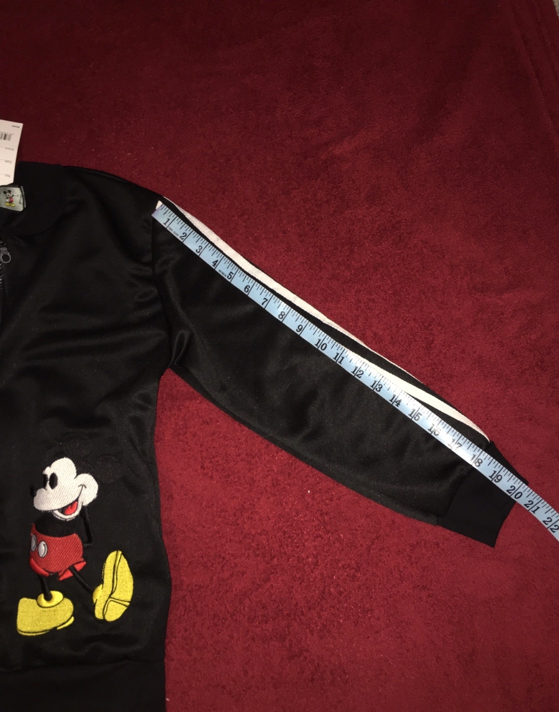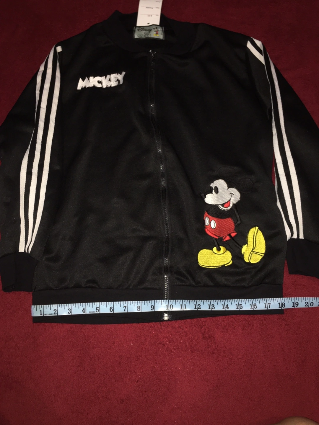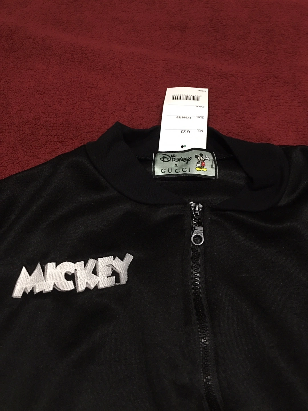 Disney x Gucci Mickey Mouse black jacket with white stripes on the sleeves and a Mickey Mouse design. Size appears to be around 26 inches in length. Pick up at Southgate Mall after 6pm on weekdays, weekends between 5-6pm Cash only Price reflects authenticity