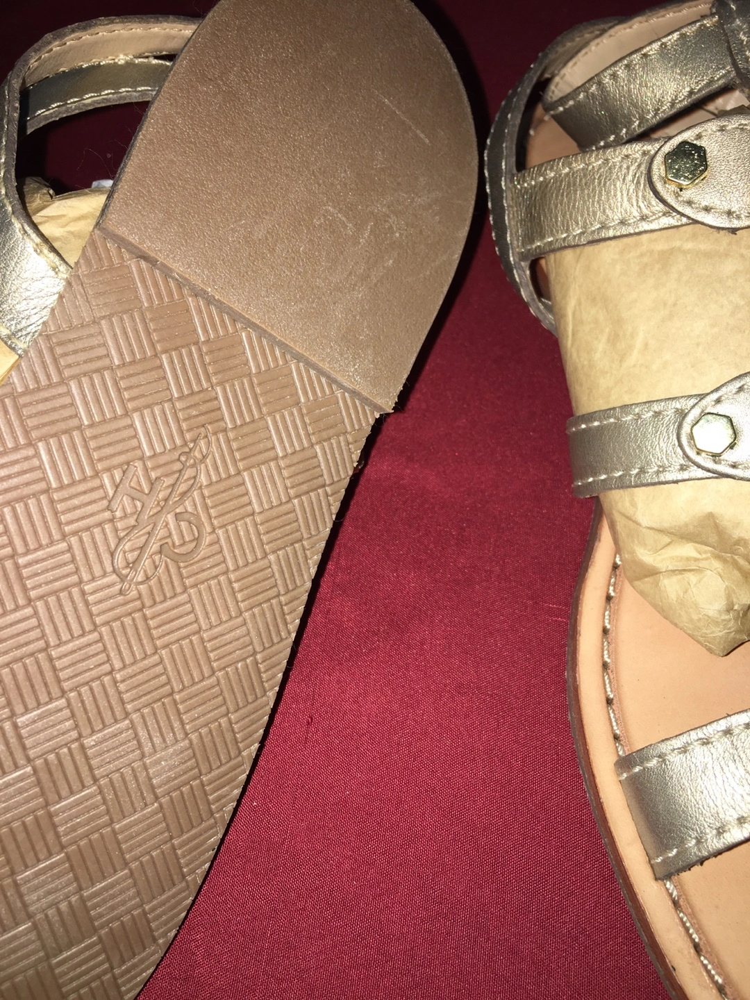 These are a pair of Cole Haan gladiator sandals in a stylish silver colour. They feature multiple straps and gold-tone hardware. Perfect for adding a touch of elegance to any outfit! Pick up at Southgate Mall after 6pm on weekdays, weekends between 5-6pm Cash only AUTHENTIC NO TRY ONS