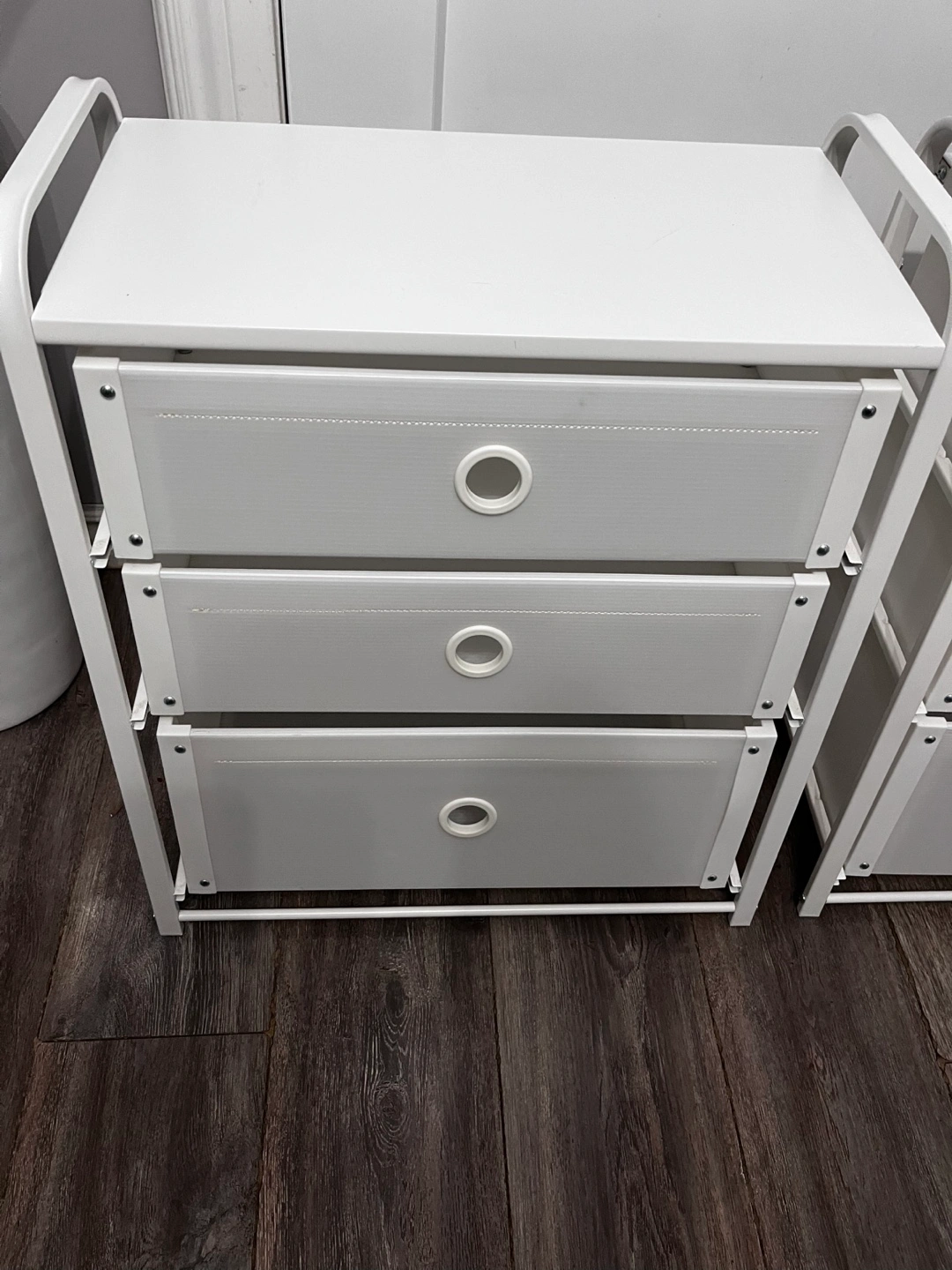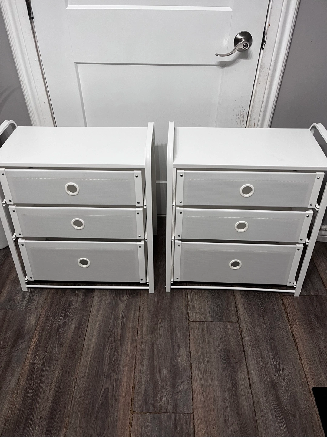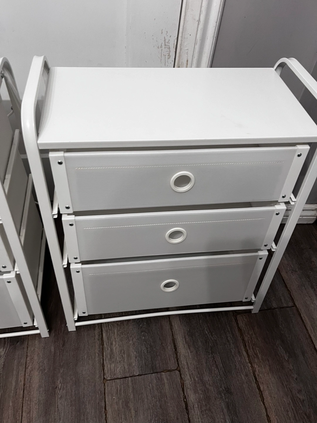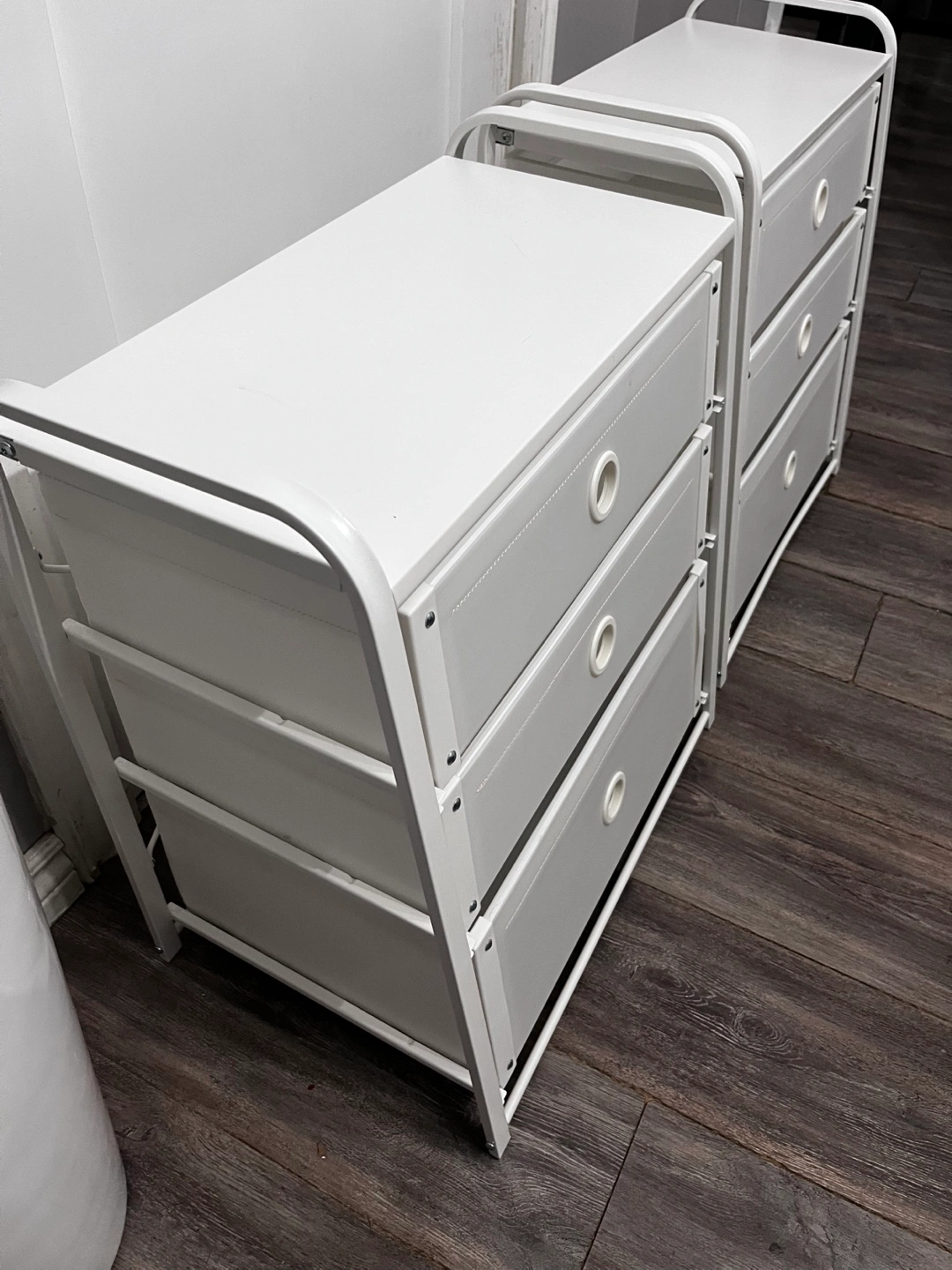 Selling a pair ikea lote white storage units with three drawers. It's in great shape and perfect for organizing any space in your home. The drawers slide smoothly, and the unit is sturdy and clean. Would be great for a closet, kids room, nightstands or side tables. Please see pics for measurements. Pick up only. Closest intersection is Jane St and Eglinton Ave.