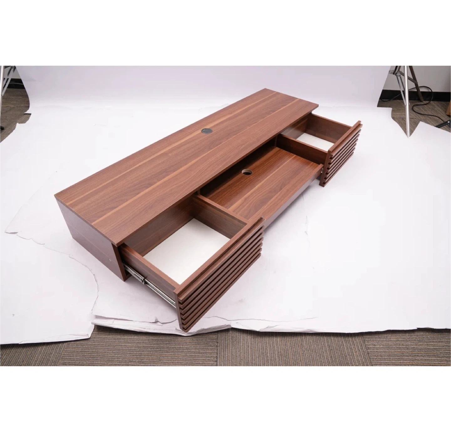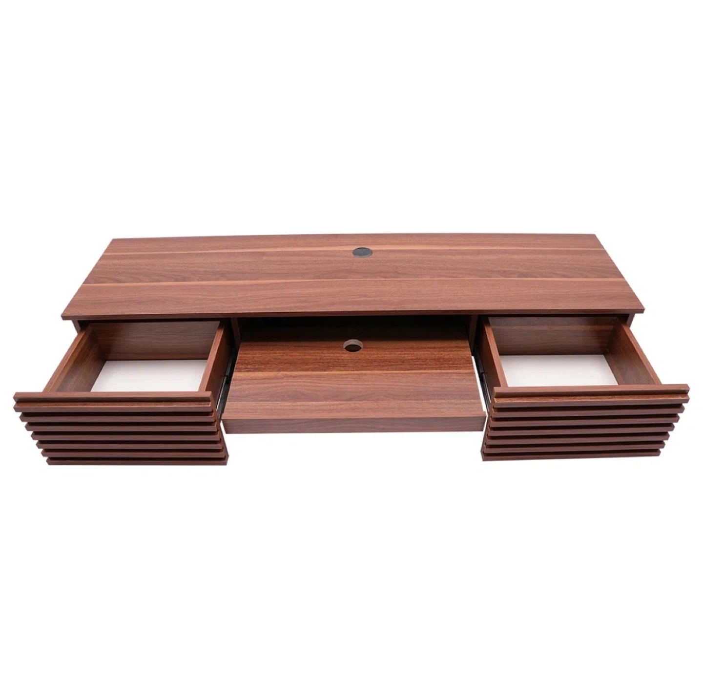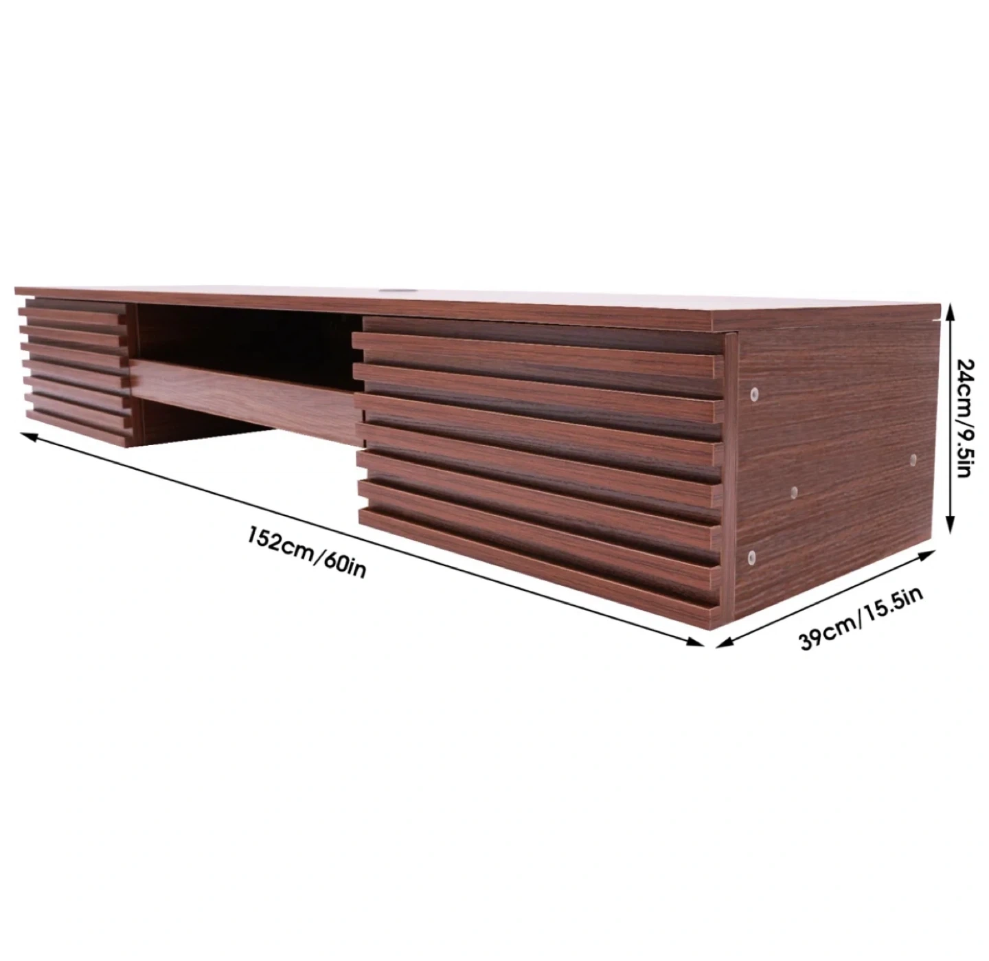 Looking to add a sleek and modern touch to your home office? This floating wall-mounted desk could be just what you need! It features a beautiful brown wood finish and a unique design that saves space while providing ample workspace. The desk includes drawers for storage, helping you keep your area organized and clutter-free. It's perfect for small spaces or anyone who appreciates minimalist design