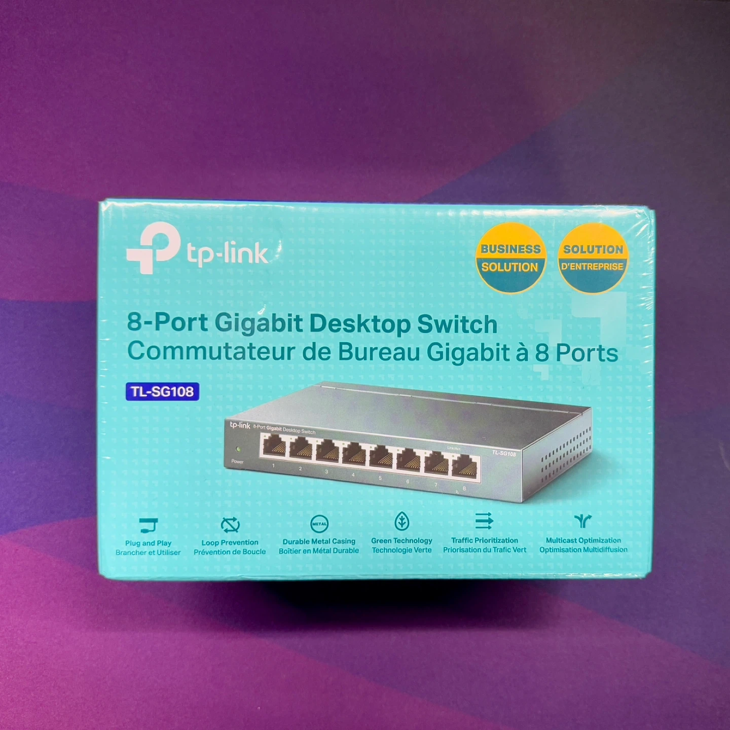Selling a brand new TP-Link TL-SG108 8-Port Gigabit Desktop Switch! It's perfect for expanding your network in a small office or home office. Item is sealed - unopened! All features & specifications shown on box (uploaded in images)!