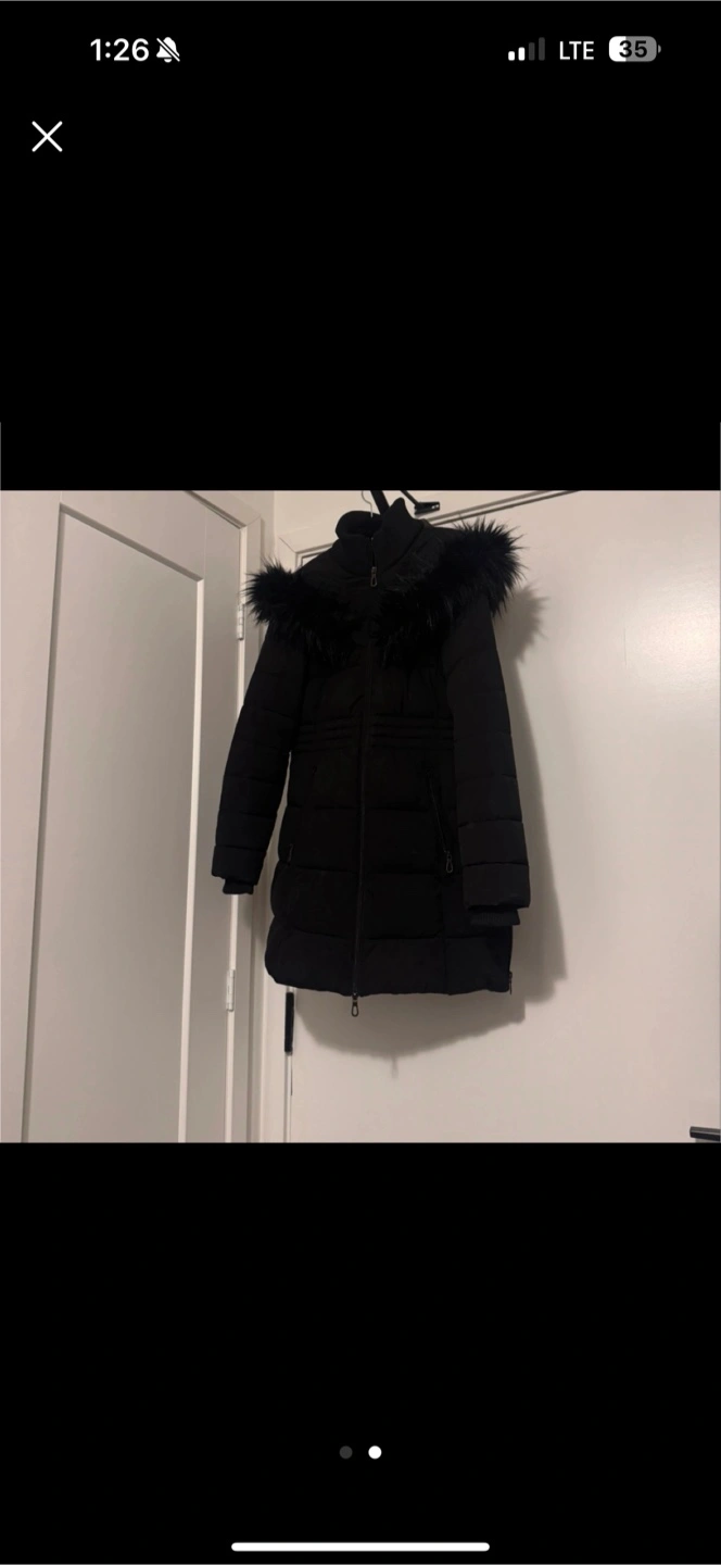 Black puffer coat from Abercrombie & Fitch. It's in great condition and ready for the colder weather! It features a faux fur trim around the hood, adding a stylish touch. This coat is perfect for staying warm and fashionable during the winter months