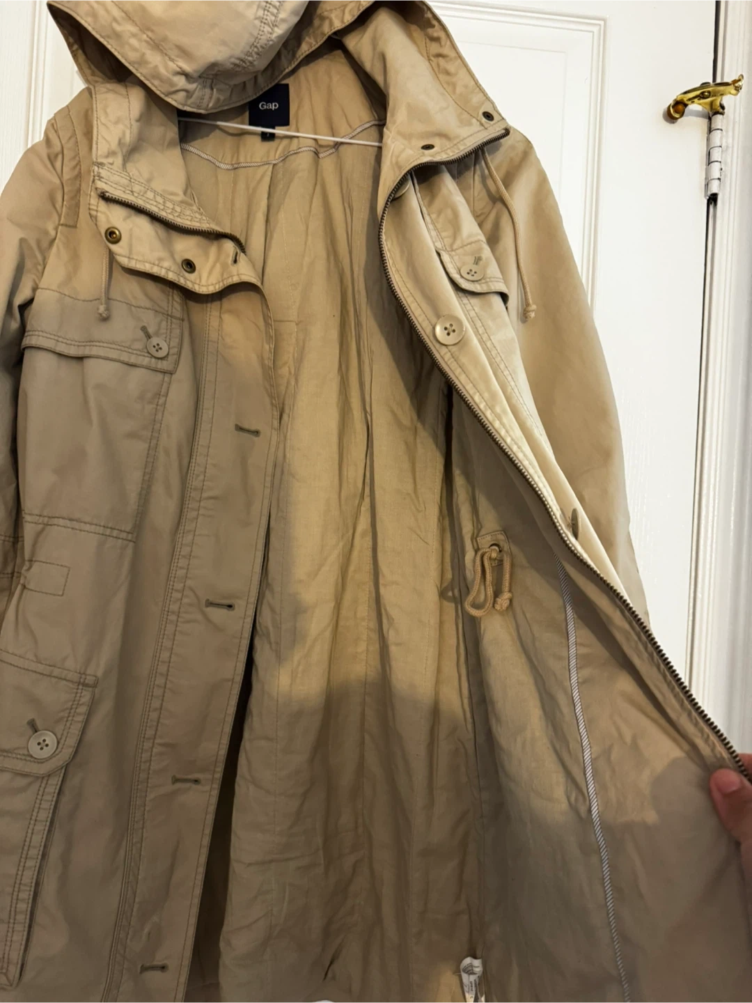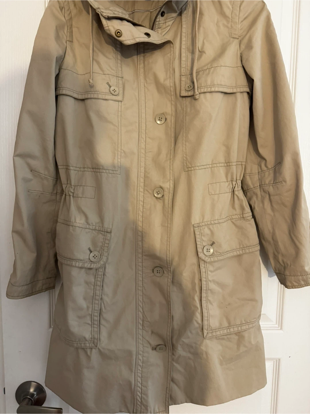 Selling a Gap hooded jacket in a nice beige colour. It's a size small and has a button-up front with lots of handy pockets. Great for those in-between weather days! Like new $20 Yonge and finch area