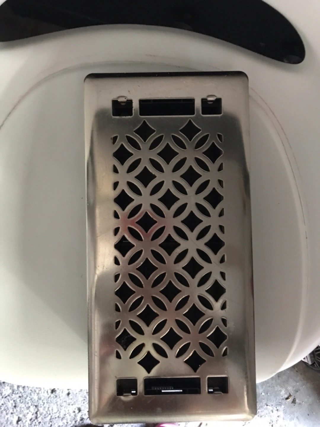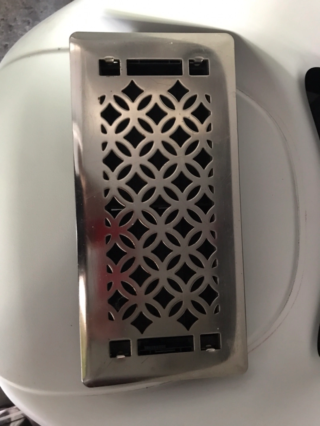 a metal floor vent cover. It's in good condition and ready to be installed in your home. It has a decorative pattern. Pick up location is 10 Alcorn Avenue M4V1E4