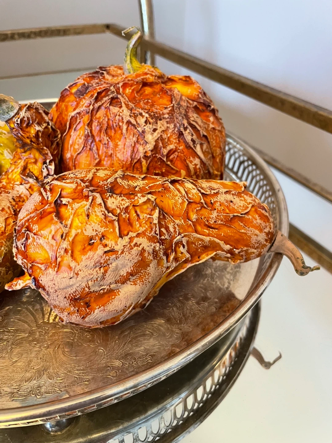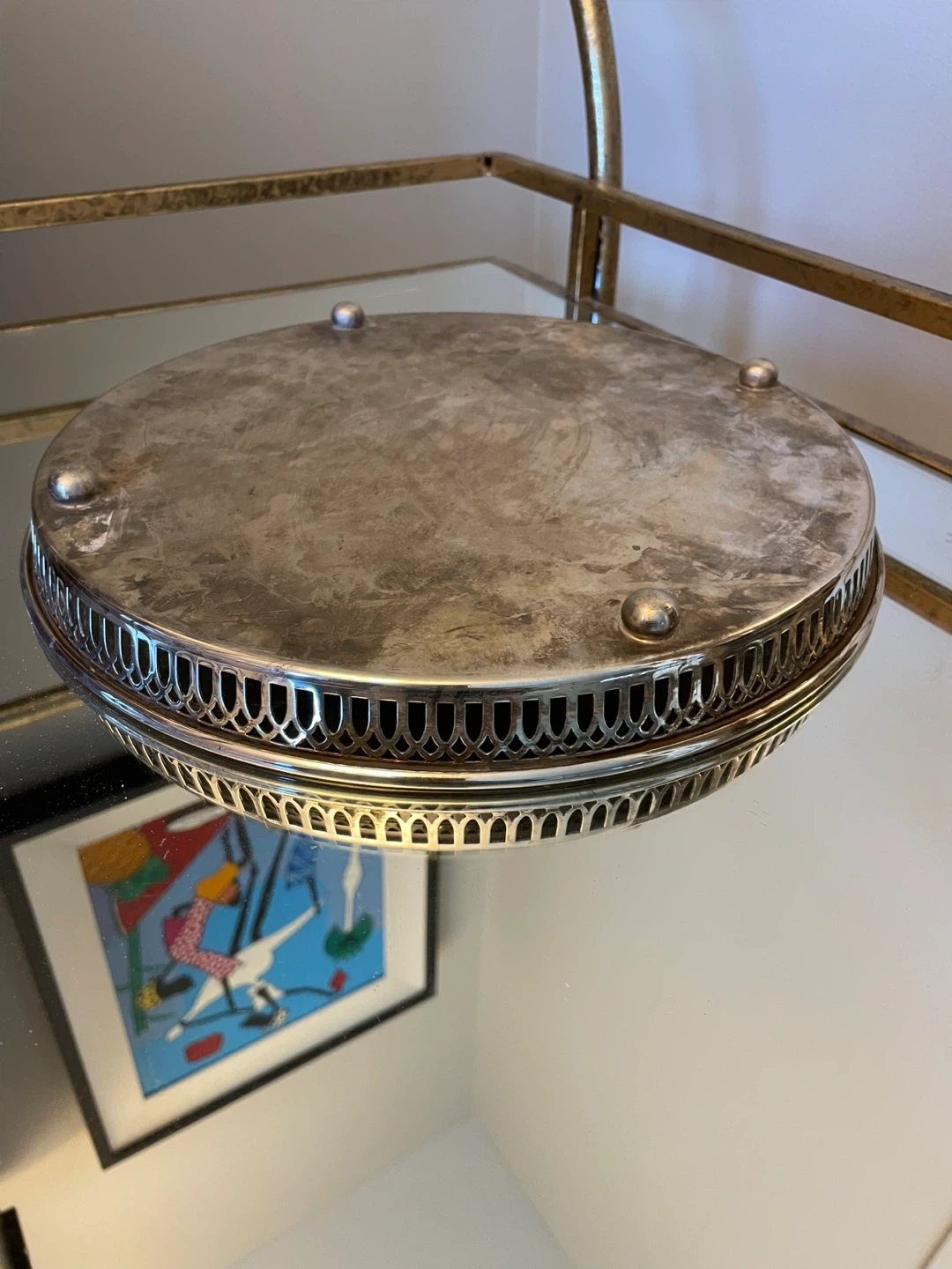 Located in Osborne Village with easy accessible driveway for pickup . Selling a 1983 vintage silver plate serving tray in need of a good polish. It is in good condition, just needs some love . The Autumn gourds are not included but are for sale as a set of 4 . 2 sets an available for 8.00 per set . Can be see in my other listings. The tray is approximately 12” in diameter. Accepting etransfer for guaranteed hold . Cash FCFS