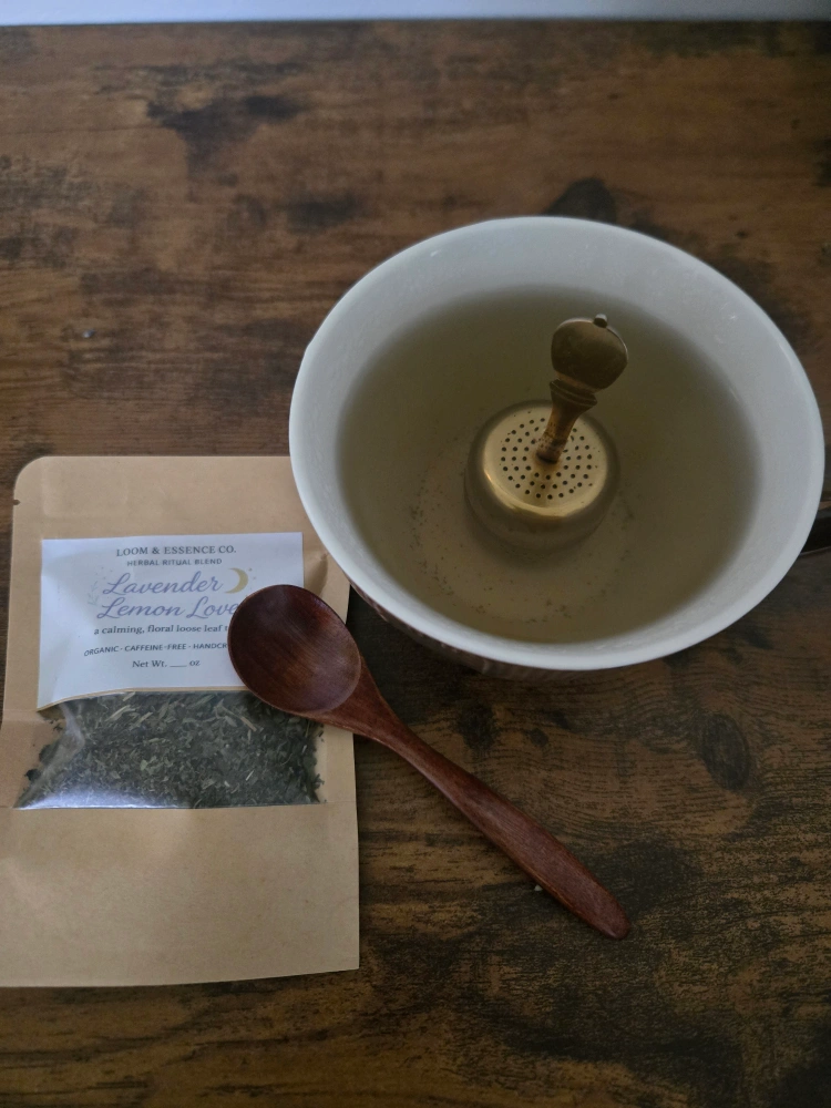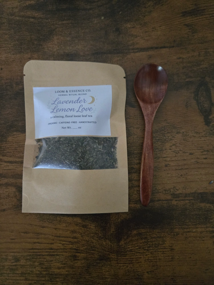 Selling a bag of Loom & Essence Co. Lavender Lemon Love tea! It's a calming, floral loose leaf tea that's organic, caffeine-free, and handcrafted. Perfect for a relaxing evening