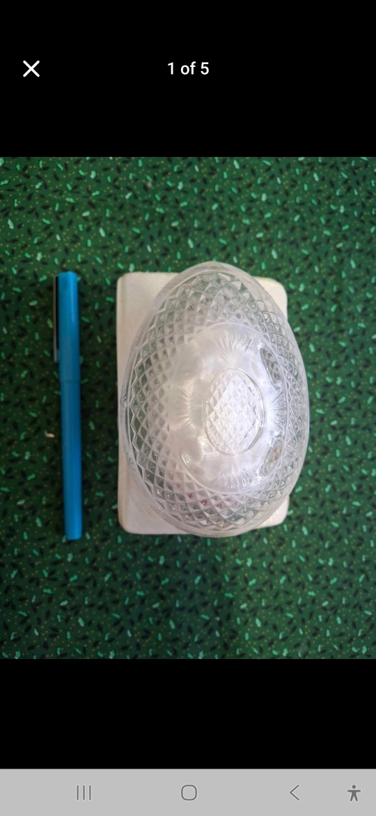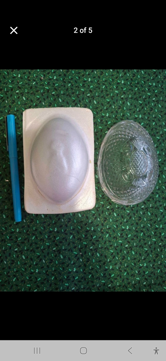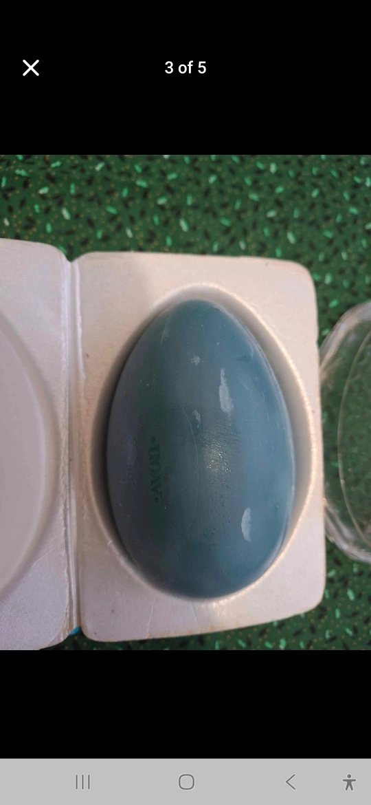 Selling a unique set of decorative eggs! One is a vintage Dove blue egg, and the other is a beautiful crystal egg with a lovely patterned design. Perfect for adding a touch of elegance to your home decor scent is moonwind