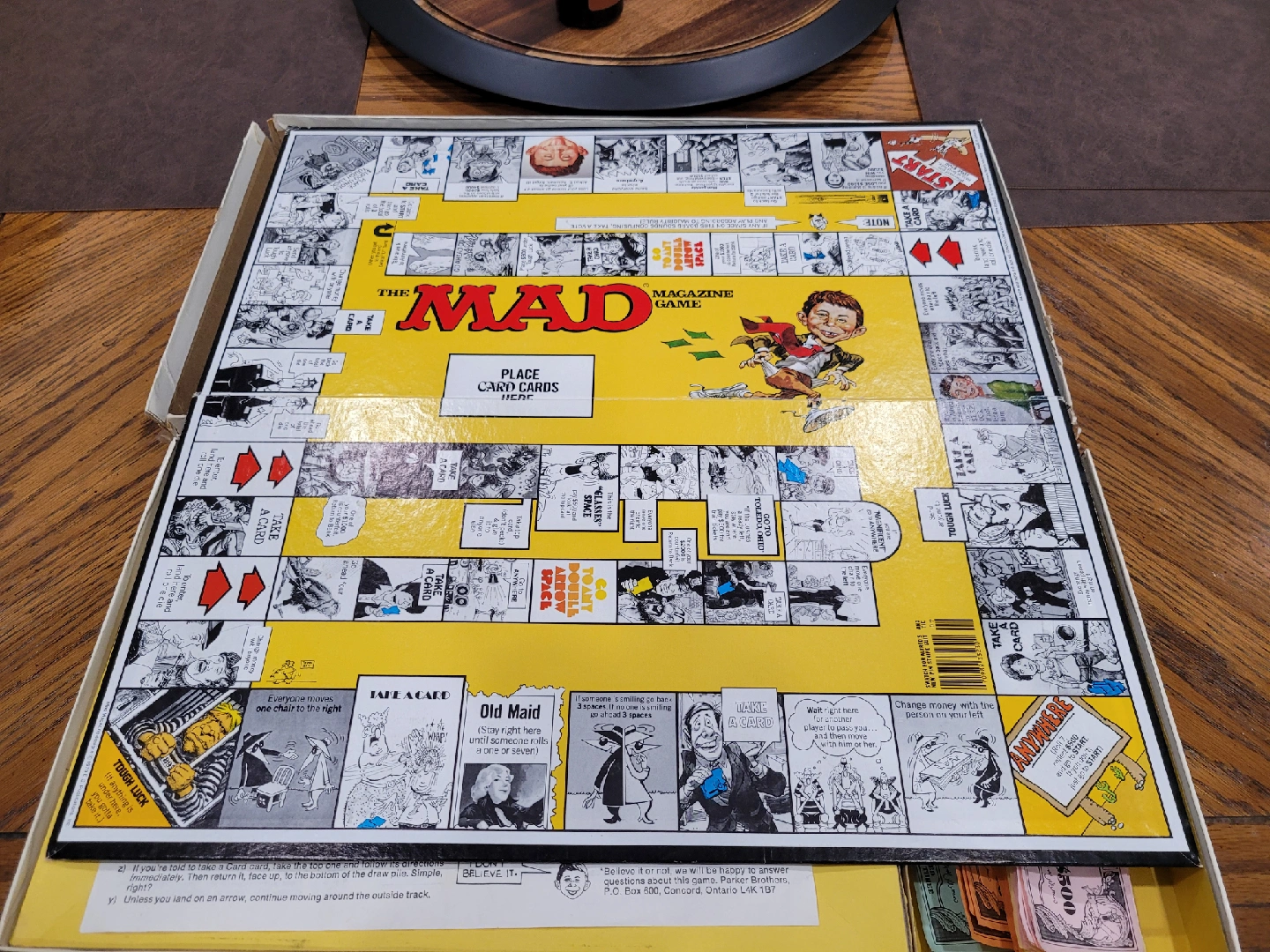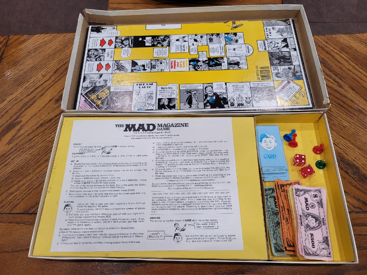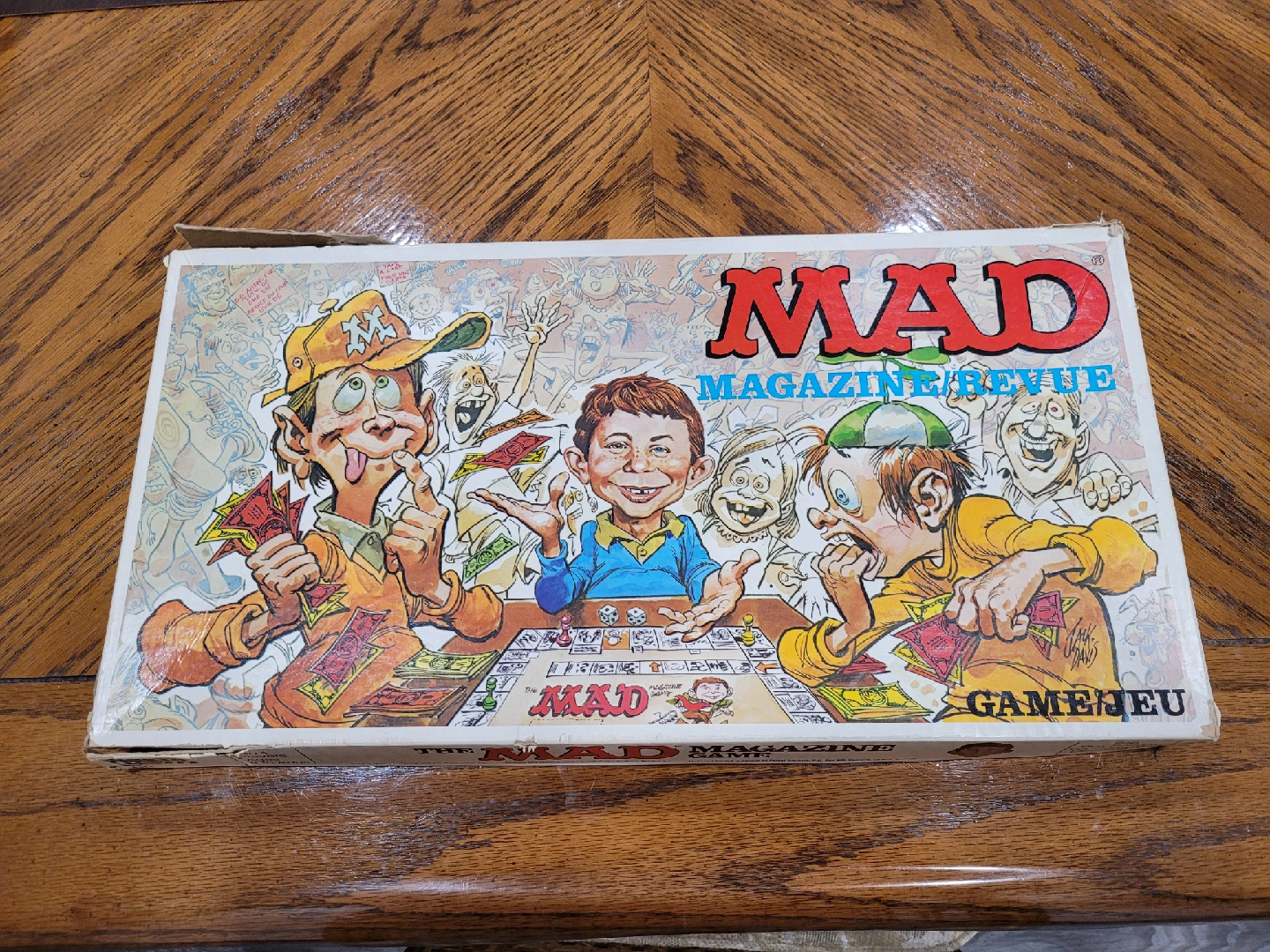 Vintage MAD Magazine Board Game – 1979 Classic Parker Brothers game where the goal is to lose all your money first! Complete with board, money, cards, dice & pawns. Box has a bit of wear but all pieces in great shape. East Regina $40 cash only
