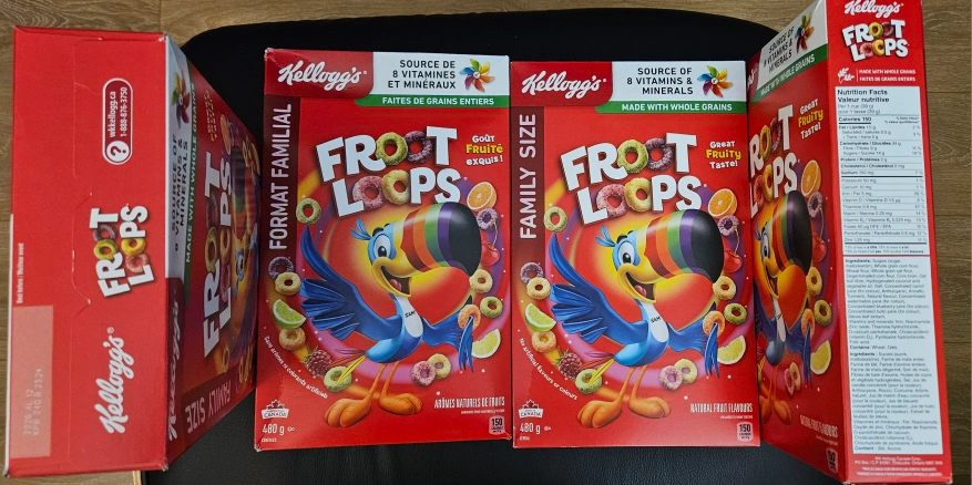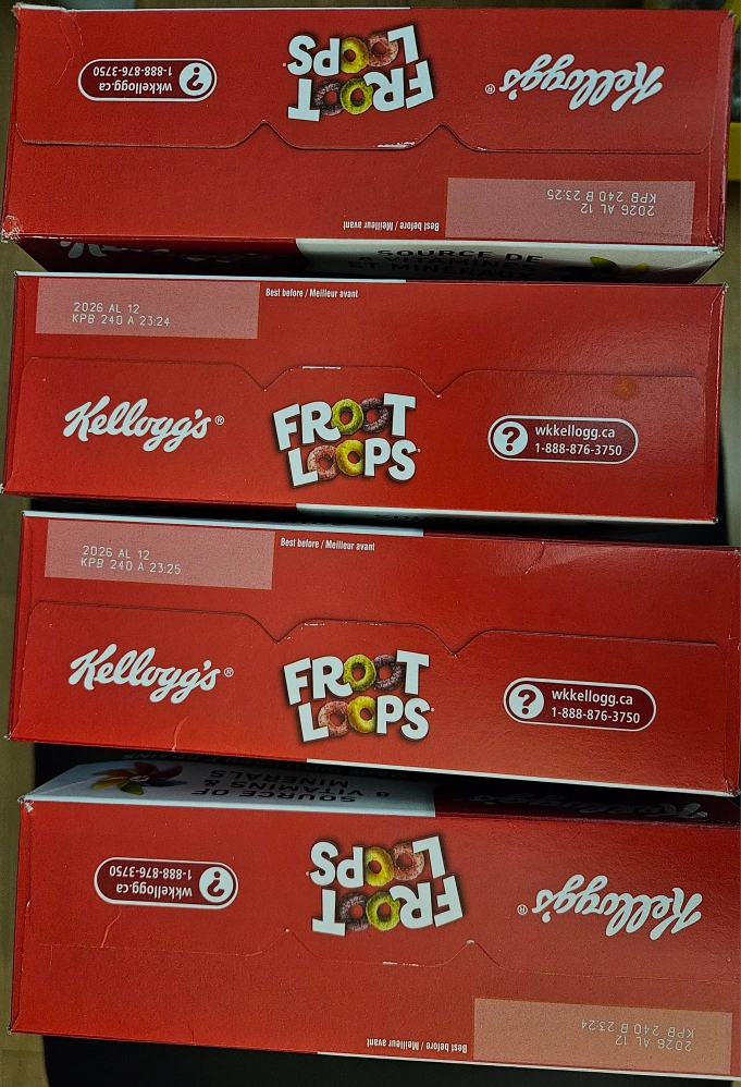 4 boxes Brand New Kellogg's Froot Loops cereal! It's the family size, 480g box. All Best Before: 2026 April 12 Pick up only @ McMahon drive near North York Ikea