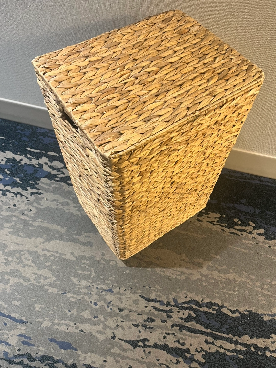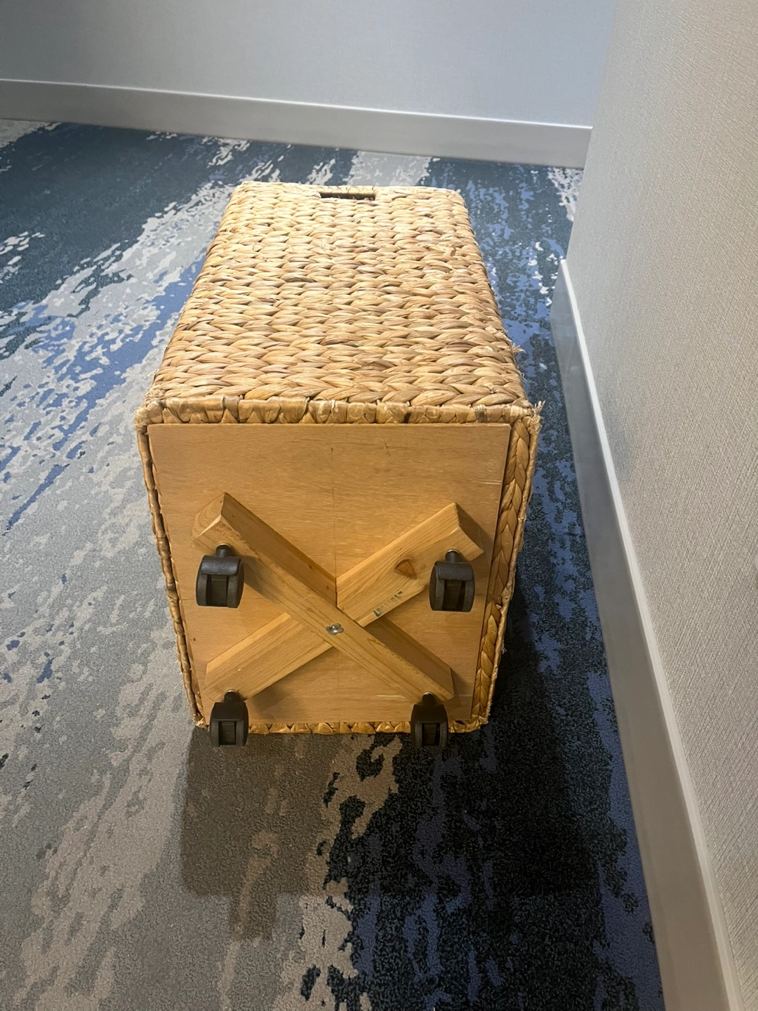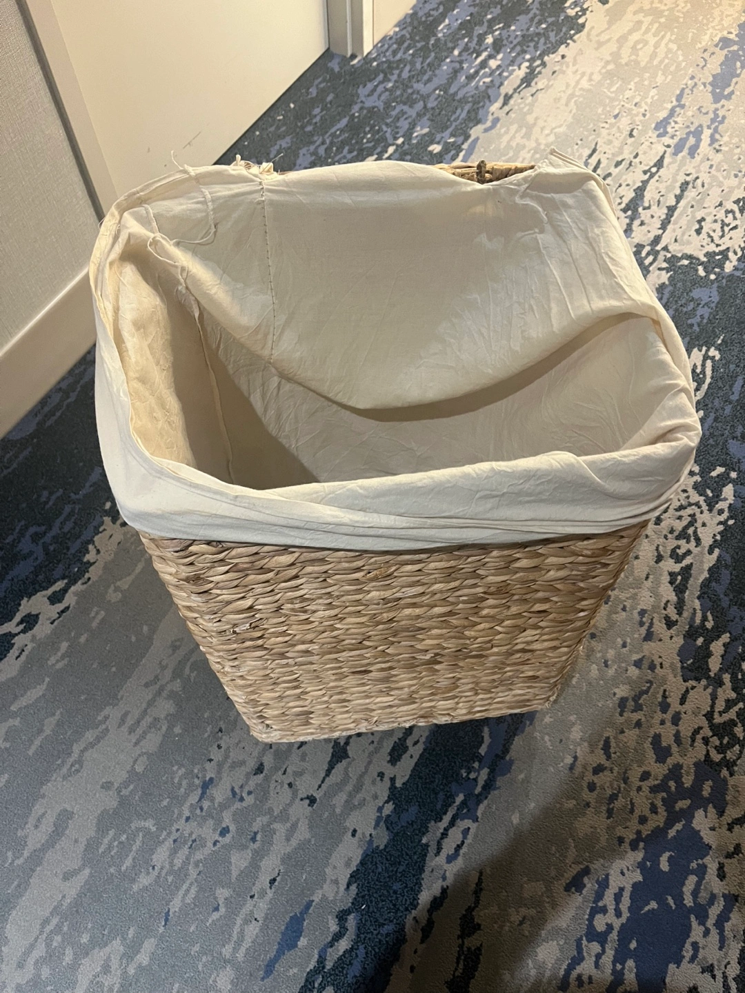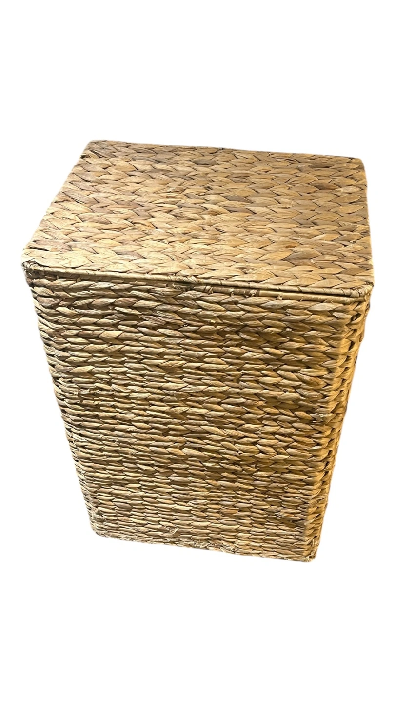 Selling a Nantucket woven seagrass hamper with wheels! It features a lid and a removable cloth liner. Great for laundry or storage!