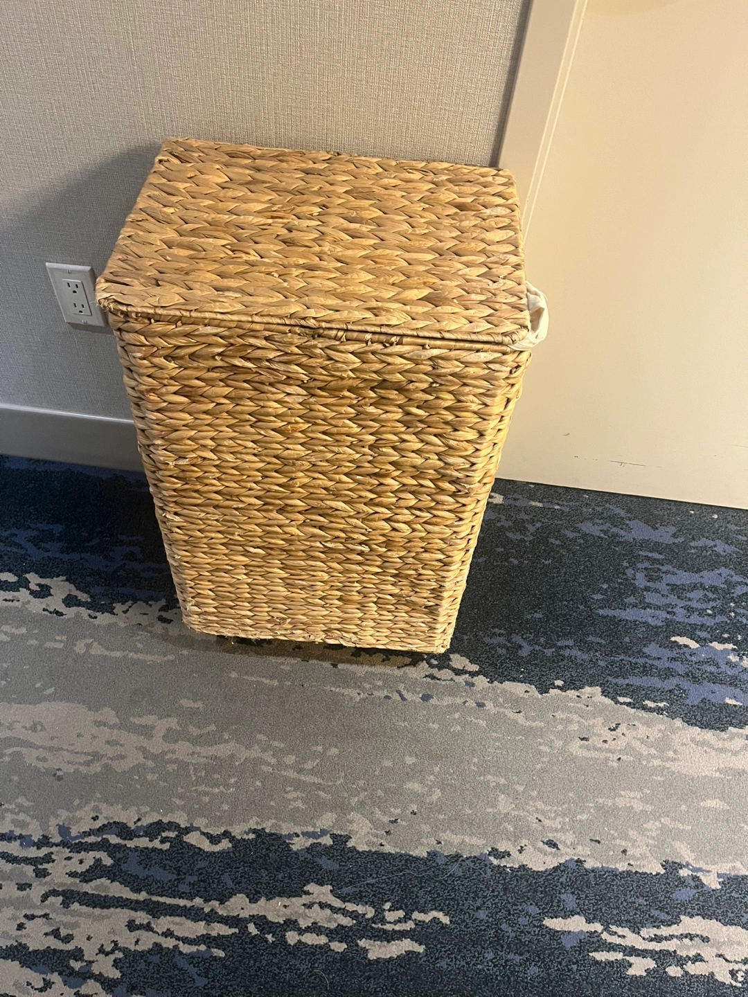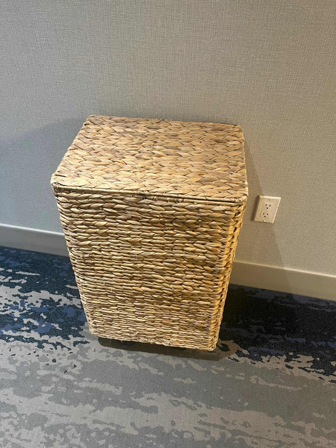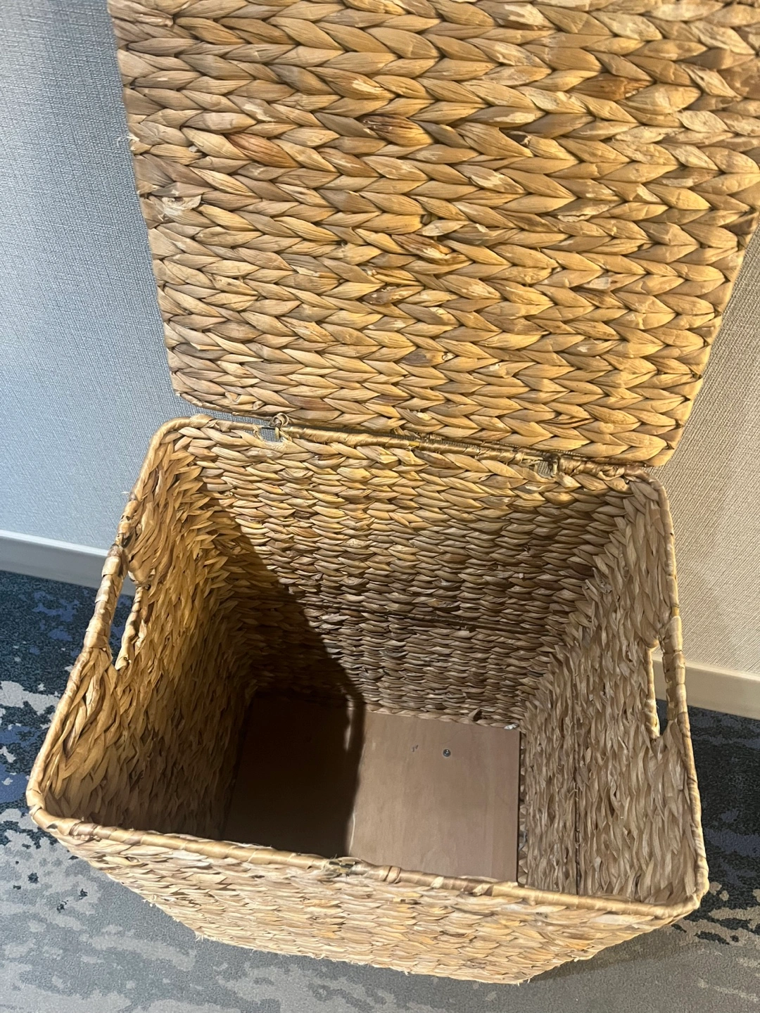 Selling a Nantucket woven seagrass hamper with wheels! It features a lid and a removable cloth liner. Great for laundry or storage!