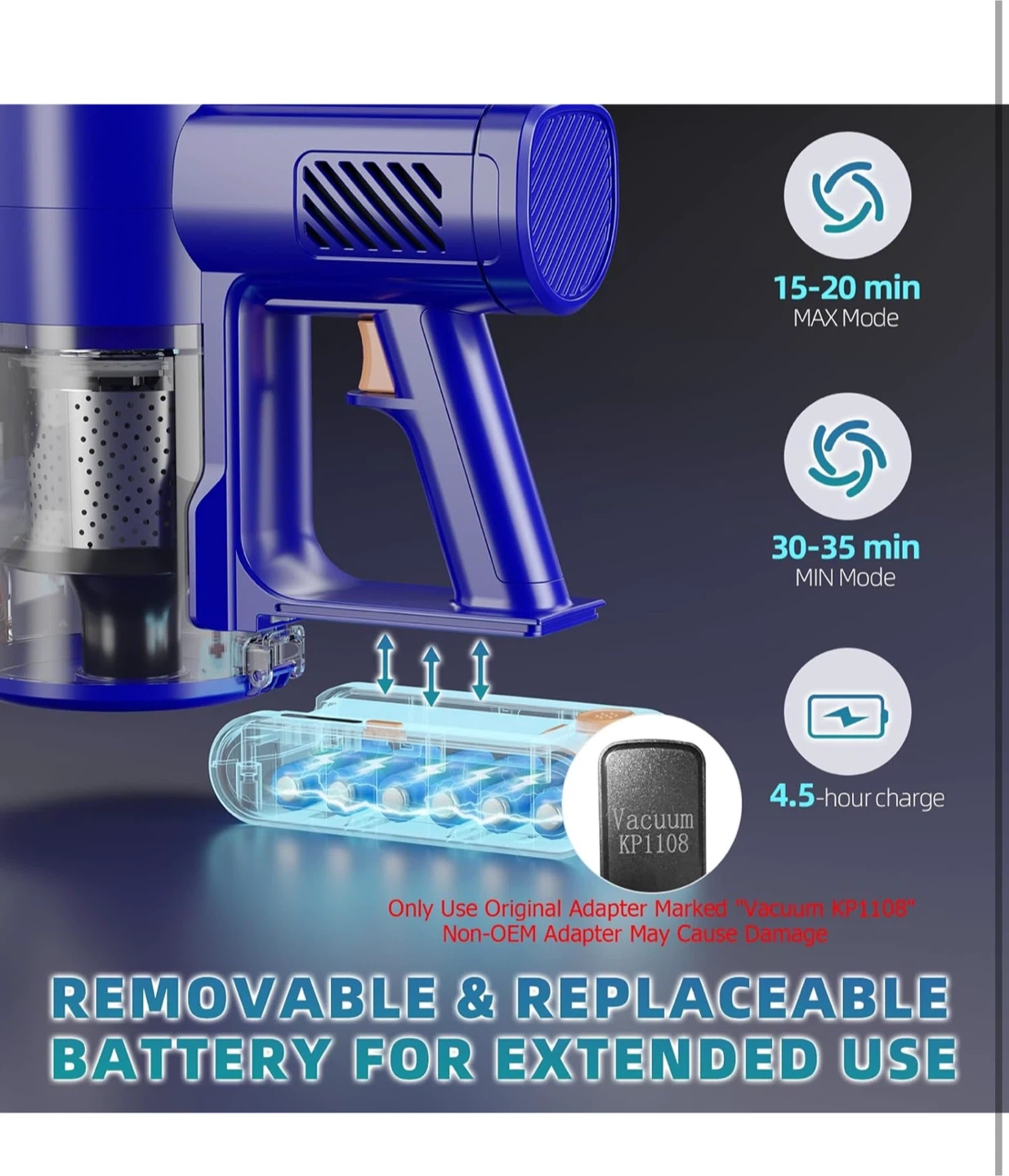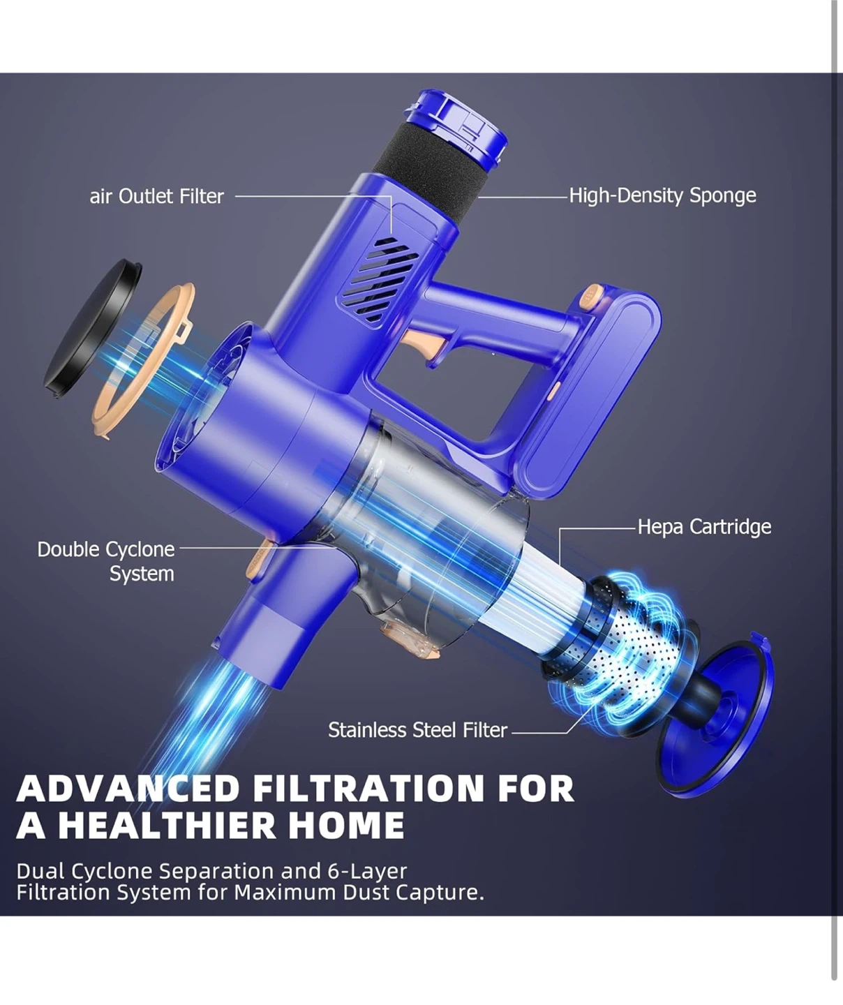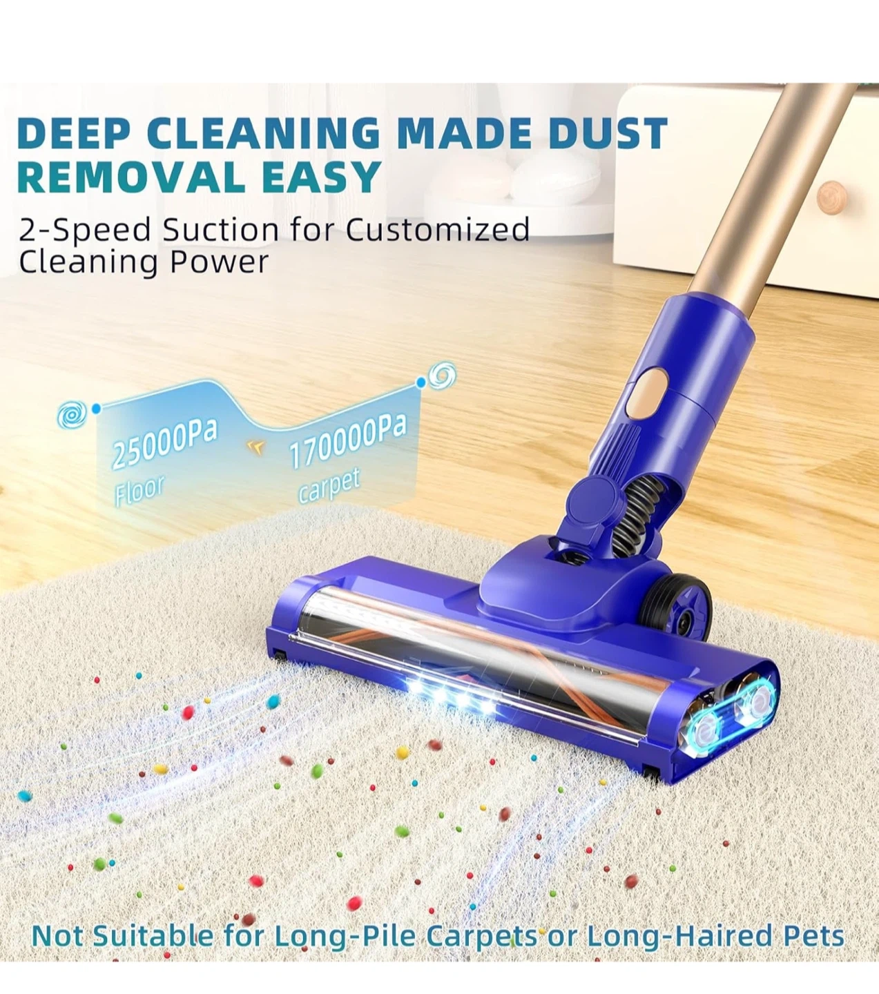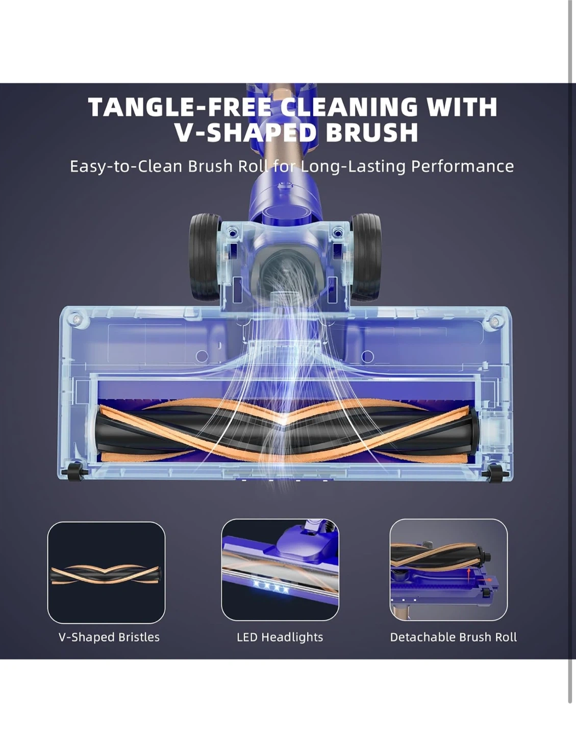 This is a MHRMHR cordless vacuum cleaner. It features a 180° bendable wand stick and a touchscreen. It's an 8-in-1 vacuum with a lightweight rechargeable battery, offering a long runtime for home cleaning on hard floors and low-pile carpets. The vacuum has a removable and replaceable battery for extended use and an intuitive LED display for smart cleaning