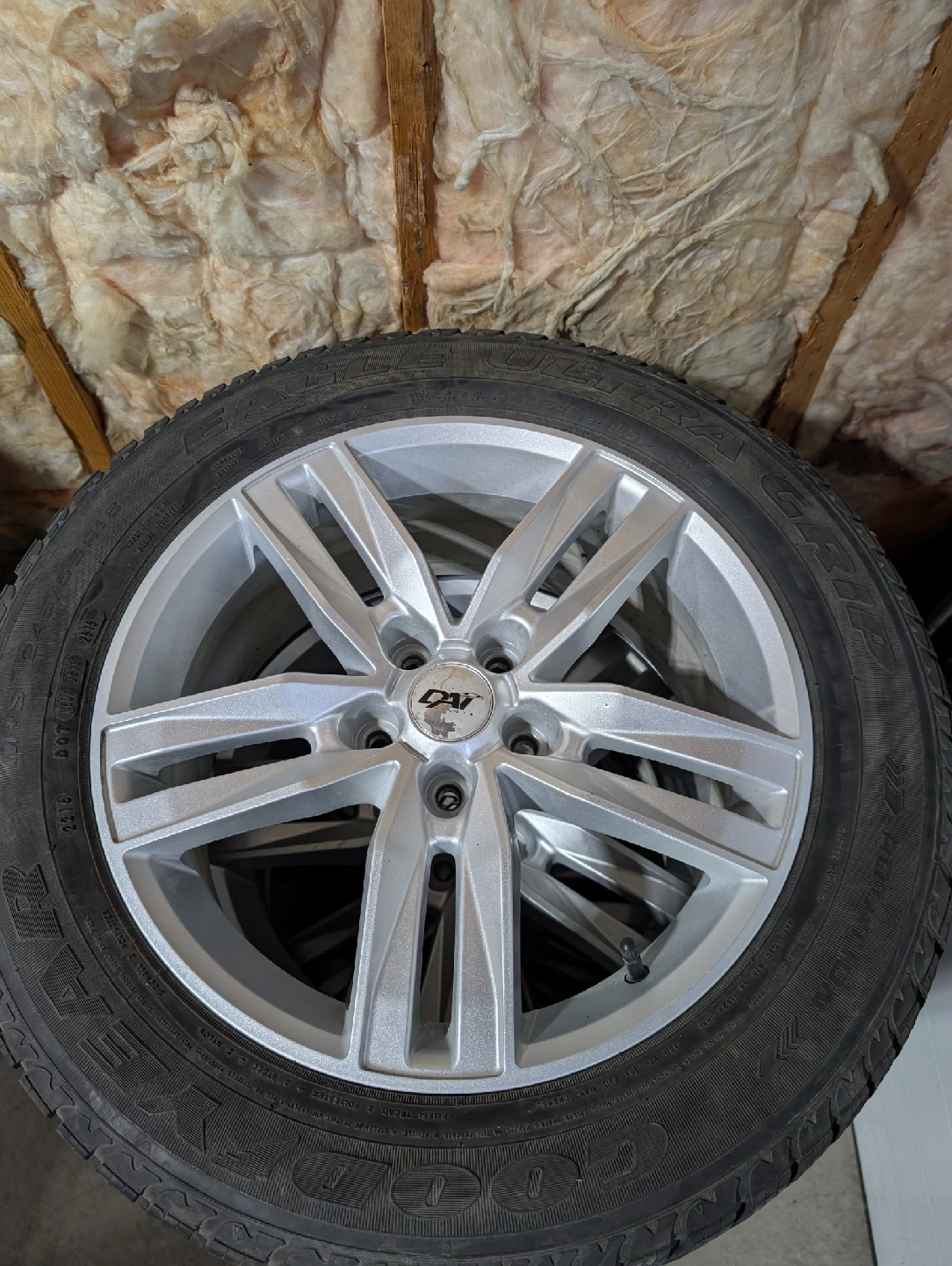 (4)-245/55R18 Winter Tires On Alloy Rims Off 2016 Hyundai Santa Fe Goodyear Ultragrip Winter Tires 8-9/32nds Or 80-90% Of Tread Left Fits 2015 -2018 Hyundai Santa Fe will also fit many other makes and models go to www.wheel-size.com or ask me if these will fit your vehicle. Bolt Pattern 5x114.3 Center Bore 67.1 Rim 18x8 Offset 45 $1,100 Obo Located Near Concordia and Lagimodiere (#W33)