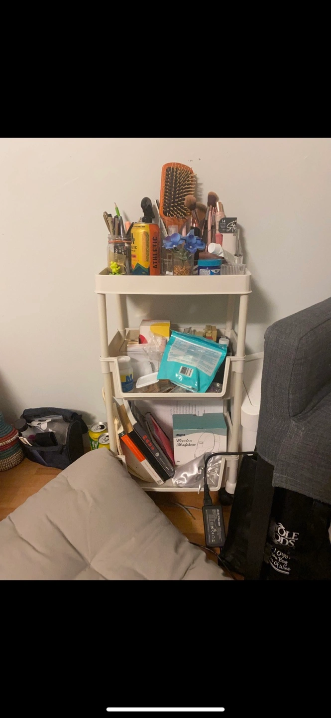 Selling my empty rolling cart. I used it to organize stuff in my room but it also can be used to keep your kitchen fruit and vegetables or even for cleaning supplies. It is plastic easy to assemble and in great condition!