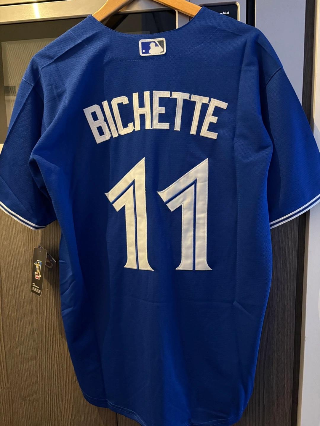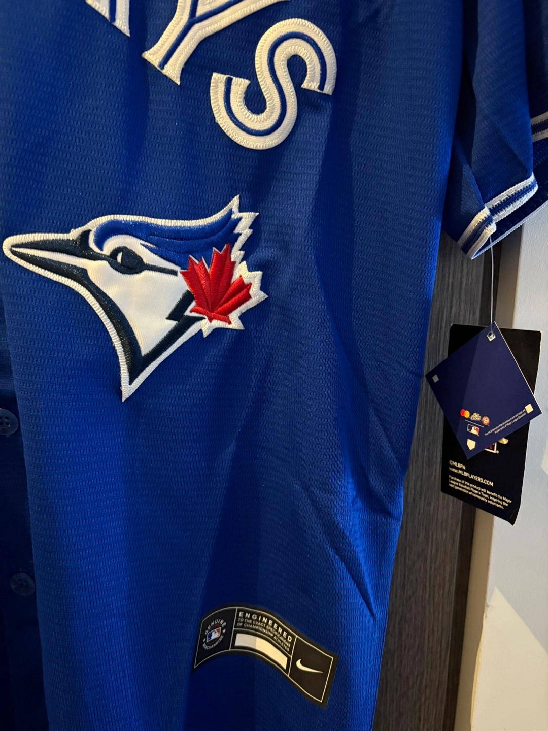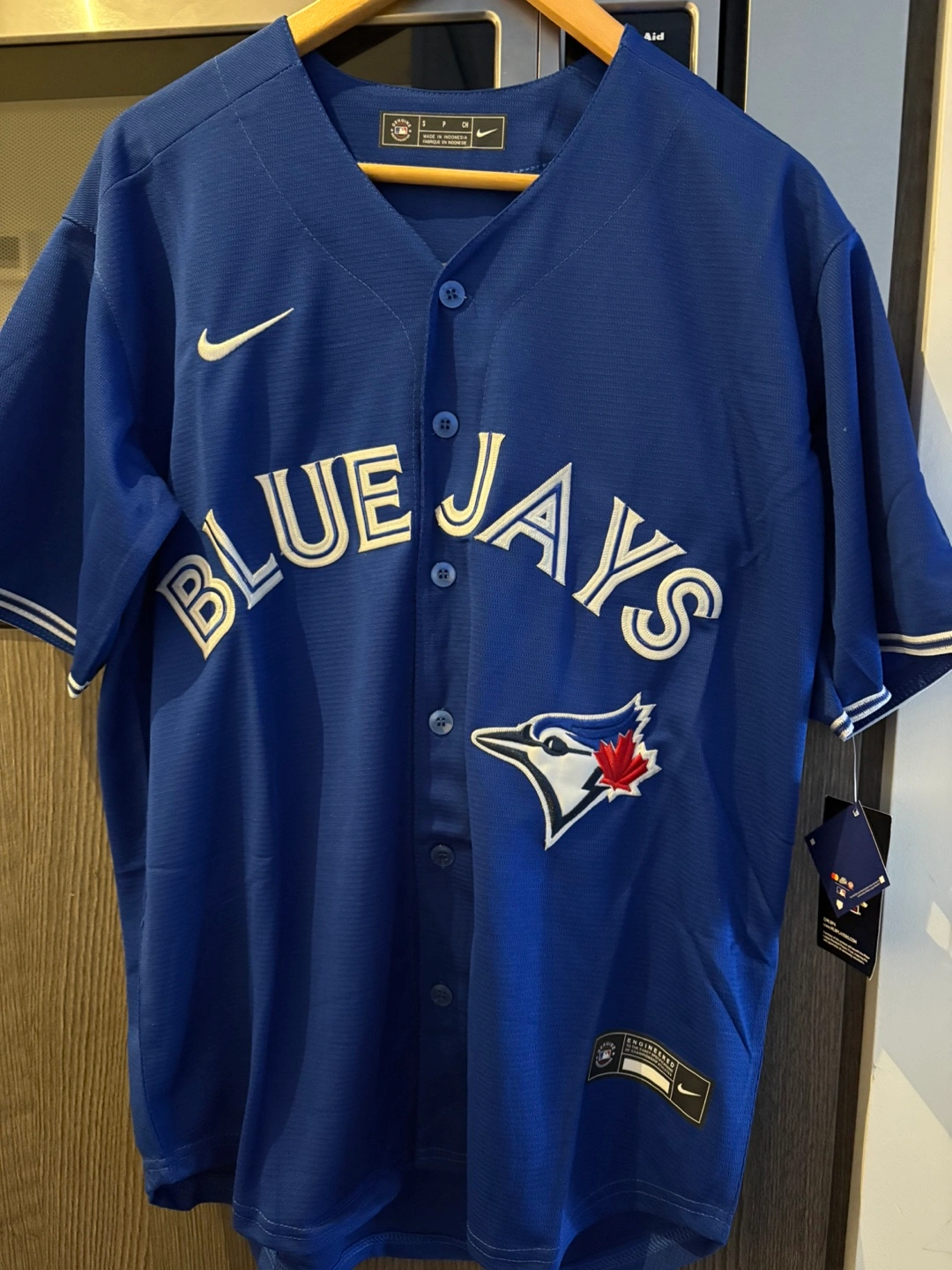 Selling a brand new Toronto Blue Jays jersey! It's a Nike jersey, size small, and features Bo Bichette's name and number 11 on the back. Perfect for showing your team spirit! Brand New Toronto Blue Jays Jerseys! Looking for the perfect Blue Jays jersey? Get a brand-new, with tags Guerrero Jr. jersey! Royal Blue, Powder Blue & White jerseys available on hand and ready for pickup today! ✅ Sizes Available: Men’s/Unisex Small – XXL ✅ Try Before You Buy: Make sure it fits before you take it home. ✅ Pickup in Downtown Toronto – Minutes from Rogers Centre! Rep the Jays in style – Get yours today!