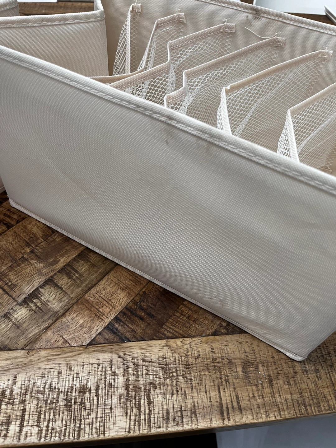 Selling a set of two fabric closet organizer bins. They're great for tidying up your wardrobe or any storage space. Beige 10” x 14.5” x 7.75” Pick up only. Closest intersection is Jane St and Eglinton Ave.