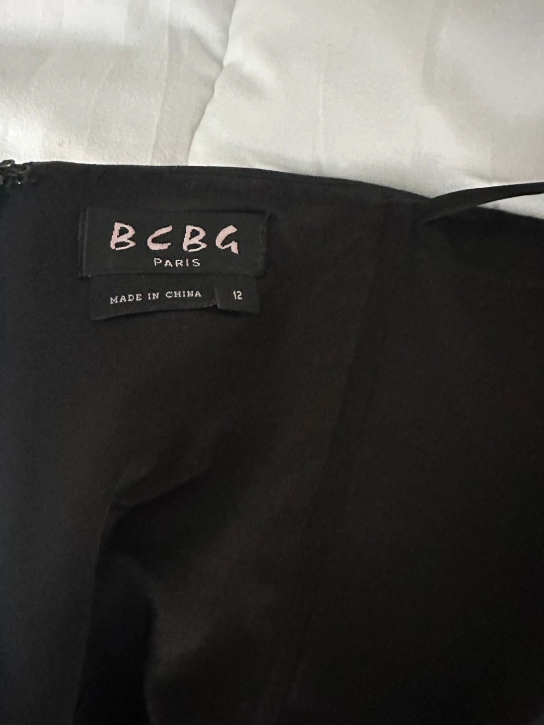 Selling a sleek black strapless dress! It features a unique design with pockets and boning on the sides. The dress is lined for extra comfort and shape. Perfect for a night out or a special occasion!