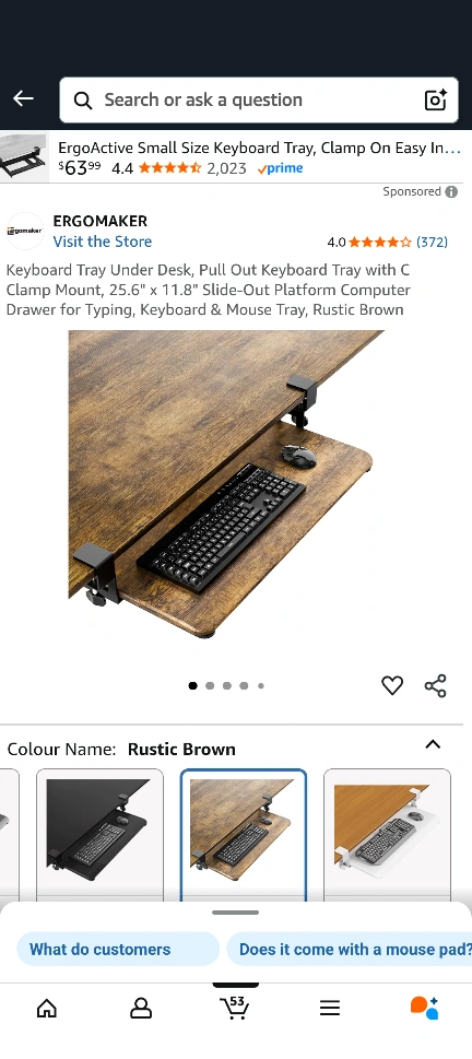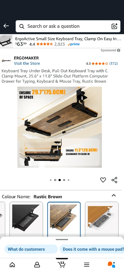 Selling an Ergomaker keyboard tray in rustic brown. It's designed to clamp onto your desk, providing a pull-out platform for your keyboard and mouse. The dimensions are 25.6" x 11.8". Comes with all the necessary components for assembly, as shown in the picture!