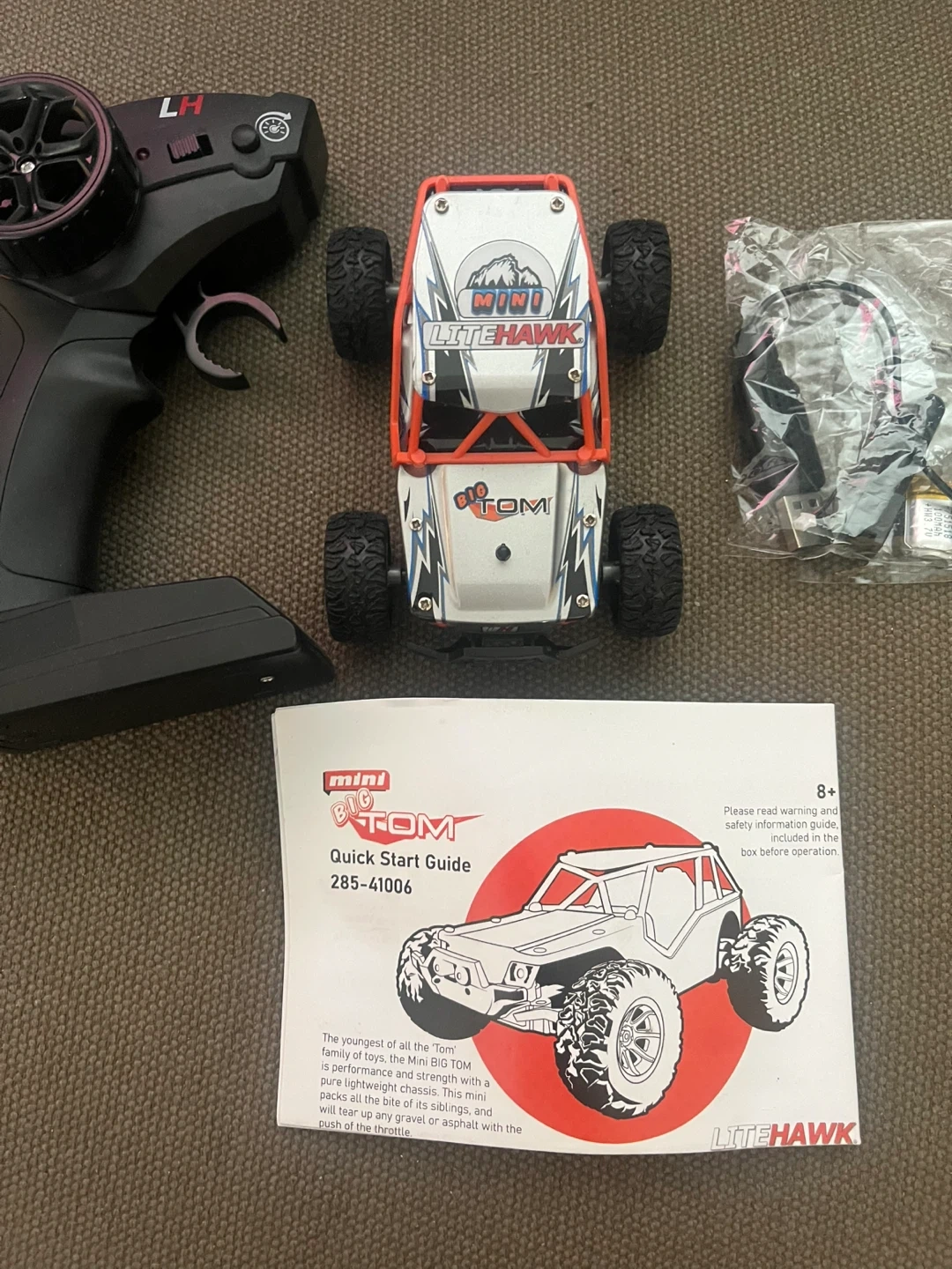 Selling a Litehawk Mini Big Tom RC truck. It comes with the remote control and a quick start guide. This mini packs all the bite of its siblings and will tear up any gravel or asphalt with the push of the throttle. It’s new. Never been used. Just missing the box. Needs batteries Pet free, smoke free home Cash only please