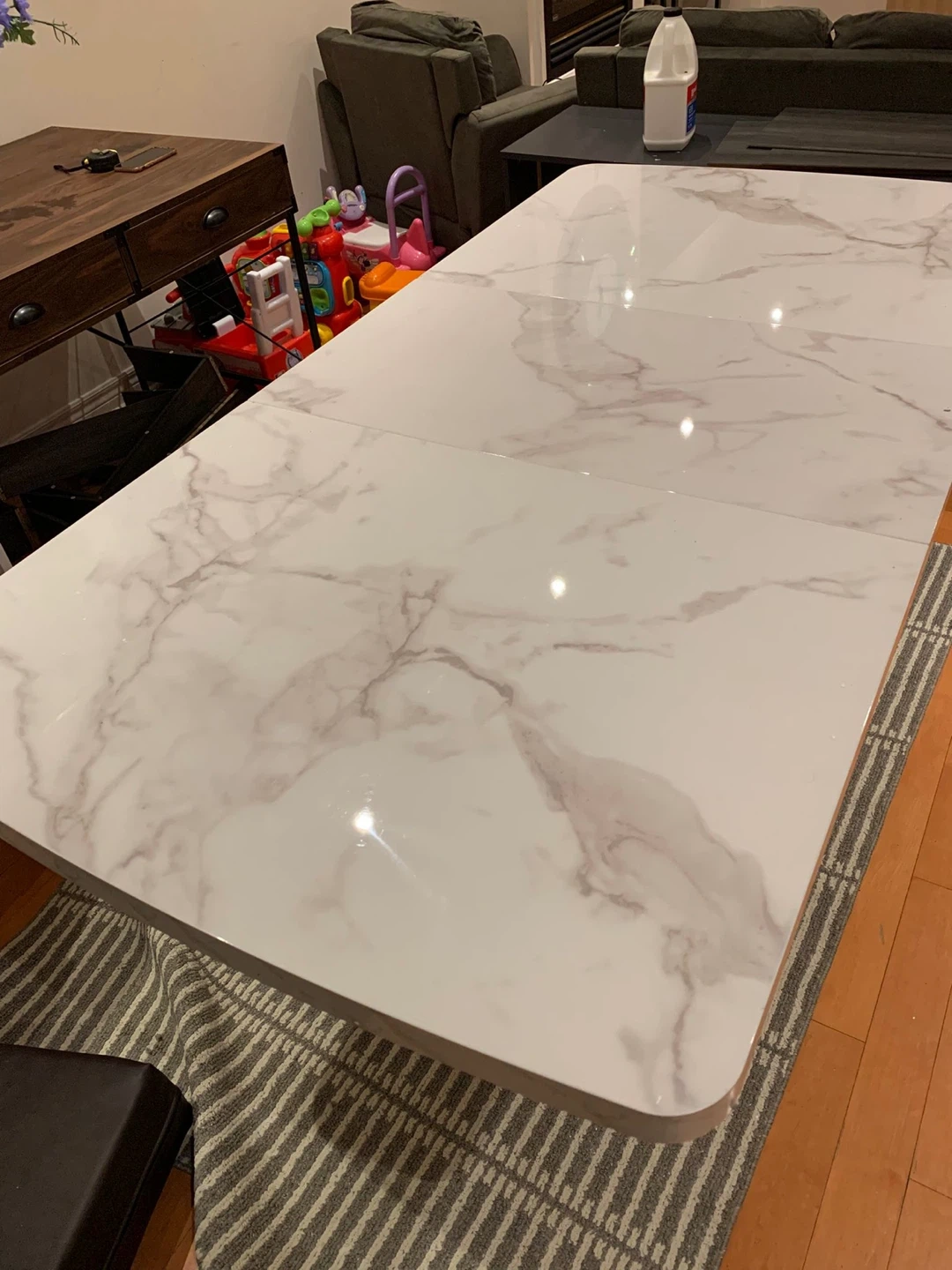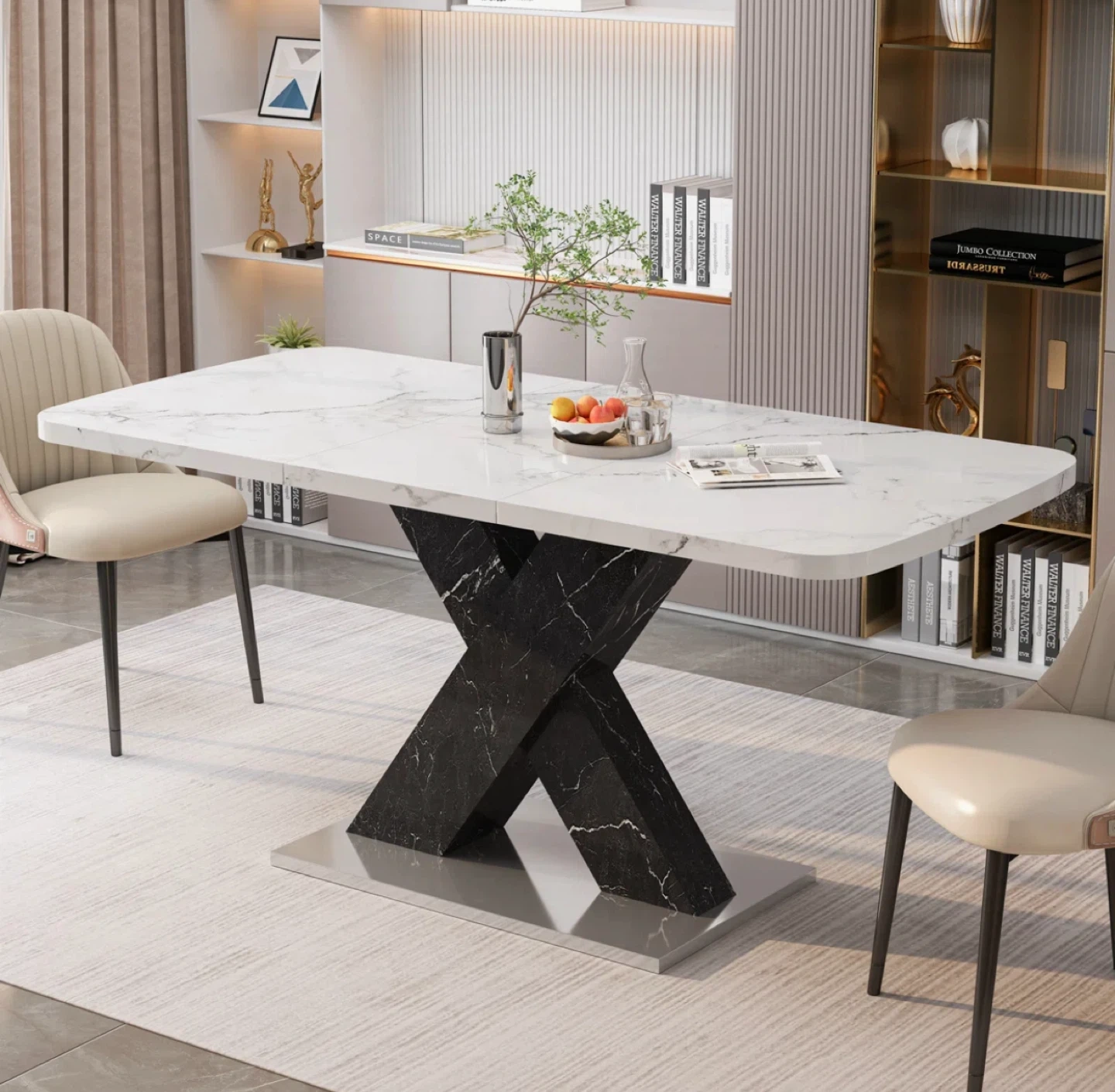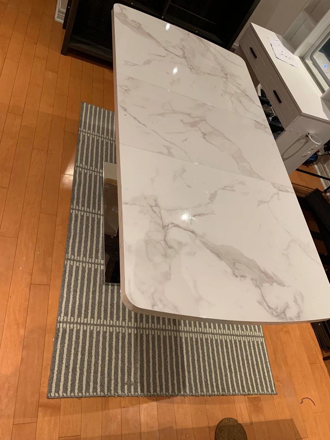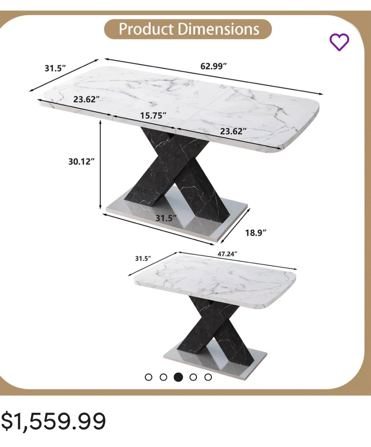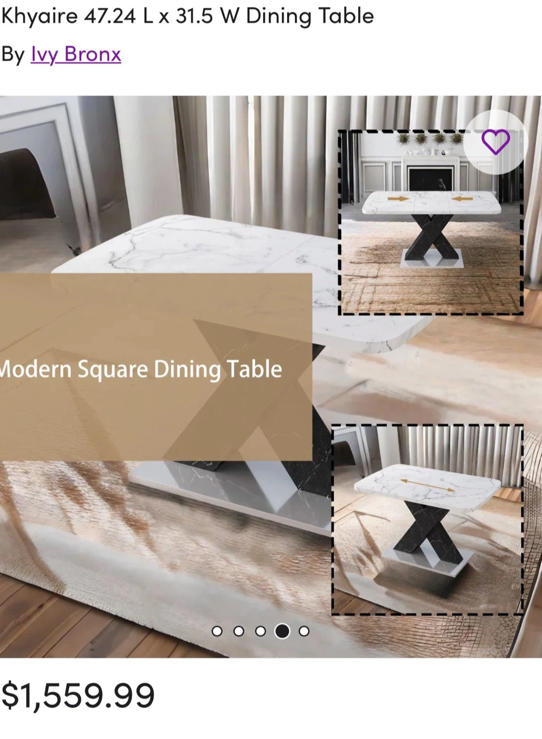 Selling an Ivy Bronx Khyaire dining table! It features a stylish marble top and a striking black X-shaped base. The dimensions are 47.24" L x 31.5" W when compact, and it extends to 62.99" in length. A beautiful addition to any dining space! I am doing staging so I used it for it. And after finish the staging I am using inside the house. It’s almost new 🙂