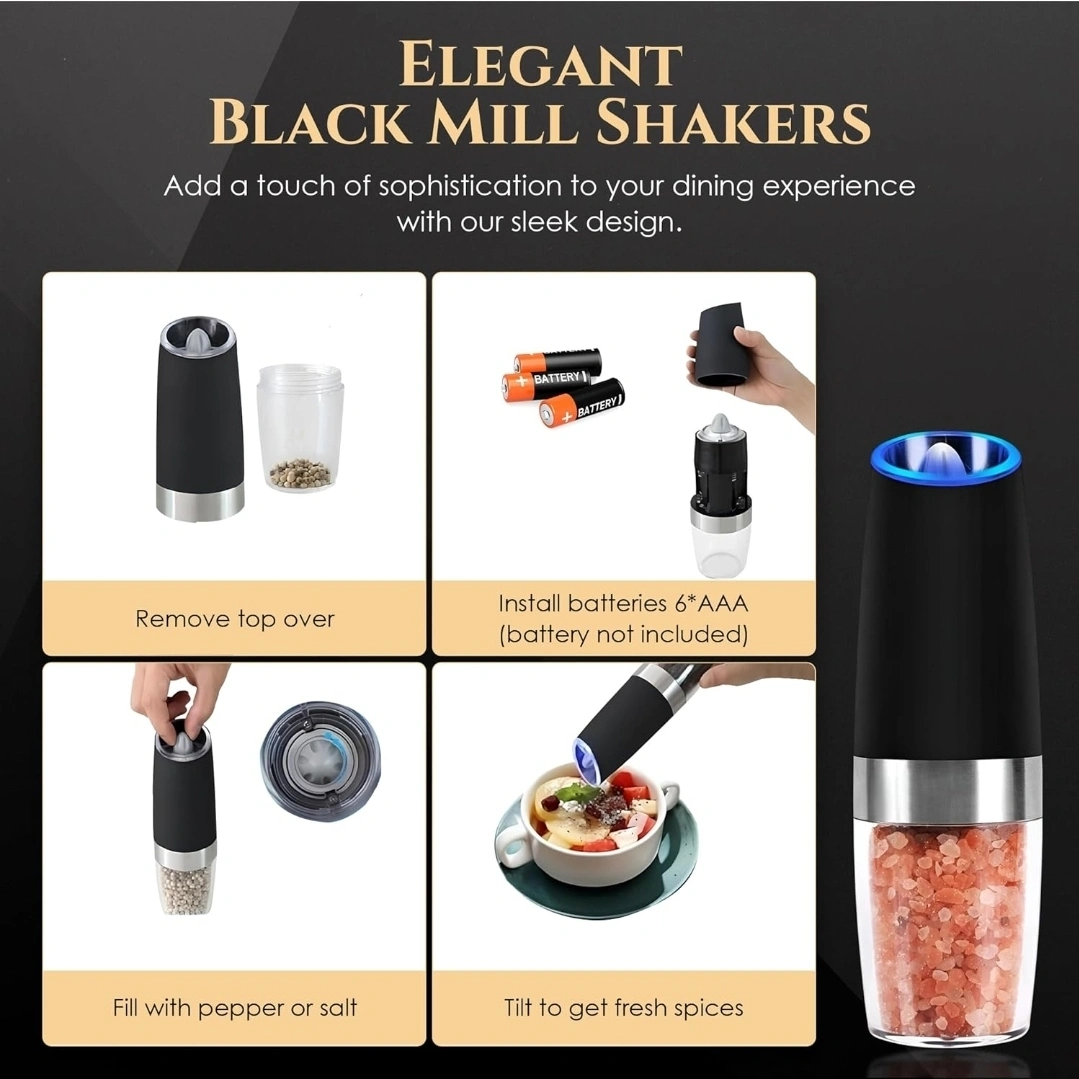 Add a touch of sophistication to your dining experience with this sleek black electric mill shaker. It ensures consistent seasoning every time with its uniform grind and flavor. The adjustable coarseness allows for the perfect grind of salt and pepper every time. It features a sleek and modern design with customizable grind settings and effortless operation. Battery-powered convenience (batteries not included) New New in the box. cost me 45 $