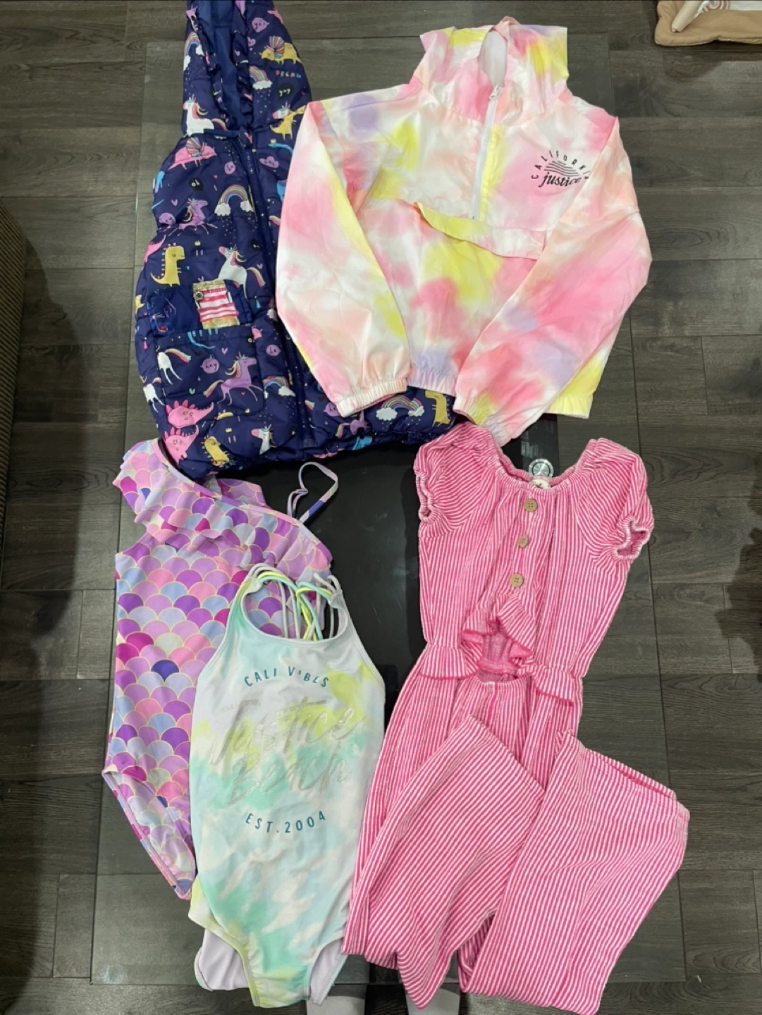 31 Items Size L (10-12) Some items still have a tag All in perfect condition Freshly washed and folded, ready for pick up or drop off depending on location Includes Old Navy, Abercrombie, Justice, Gap & more 8 Tshirts 6 long sleeves 1 sweater cardigan 3 pairs of pants 2 leggings 1 skirt 1 pair of shorts 4 dresses 1 vest 1 coat 1 pant romper 2 bathing suits