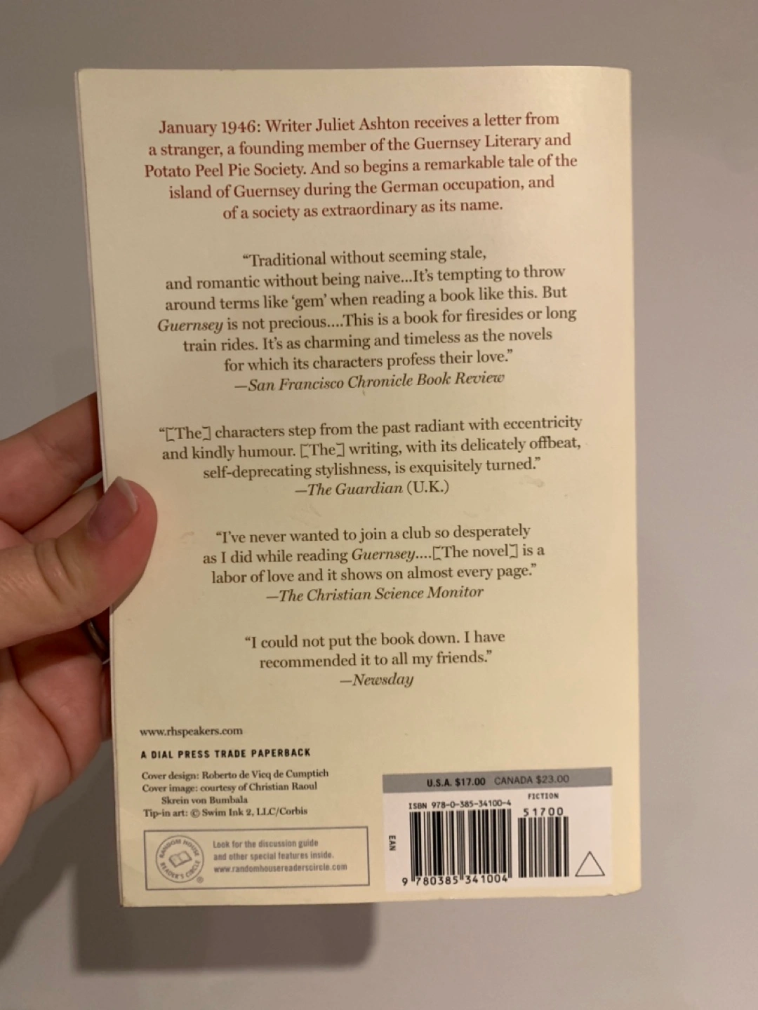 Selling "The Guernsey Literary and Potato Peel Pie Society" paperback by Mary Ann Shaffer and Annie Barrows. A Dial Press Trade Paperback. This book was originally priced at $23 in Canada. It's a novel that has received rave reviews from the San Francisco Chronicle Book Review, The Guardian (U.K.), and The Christian Science Monitor. A great read for book lovers.