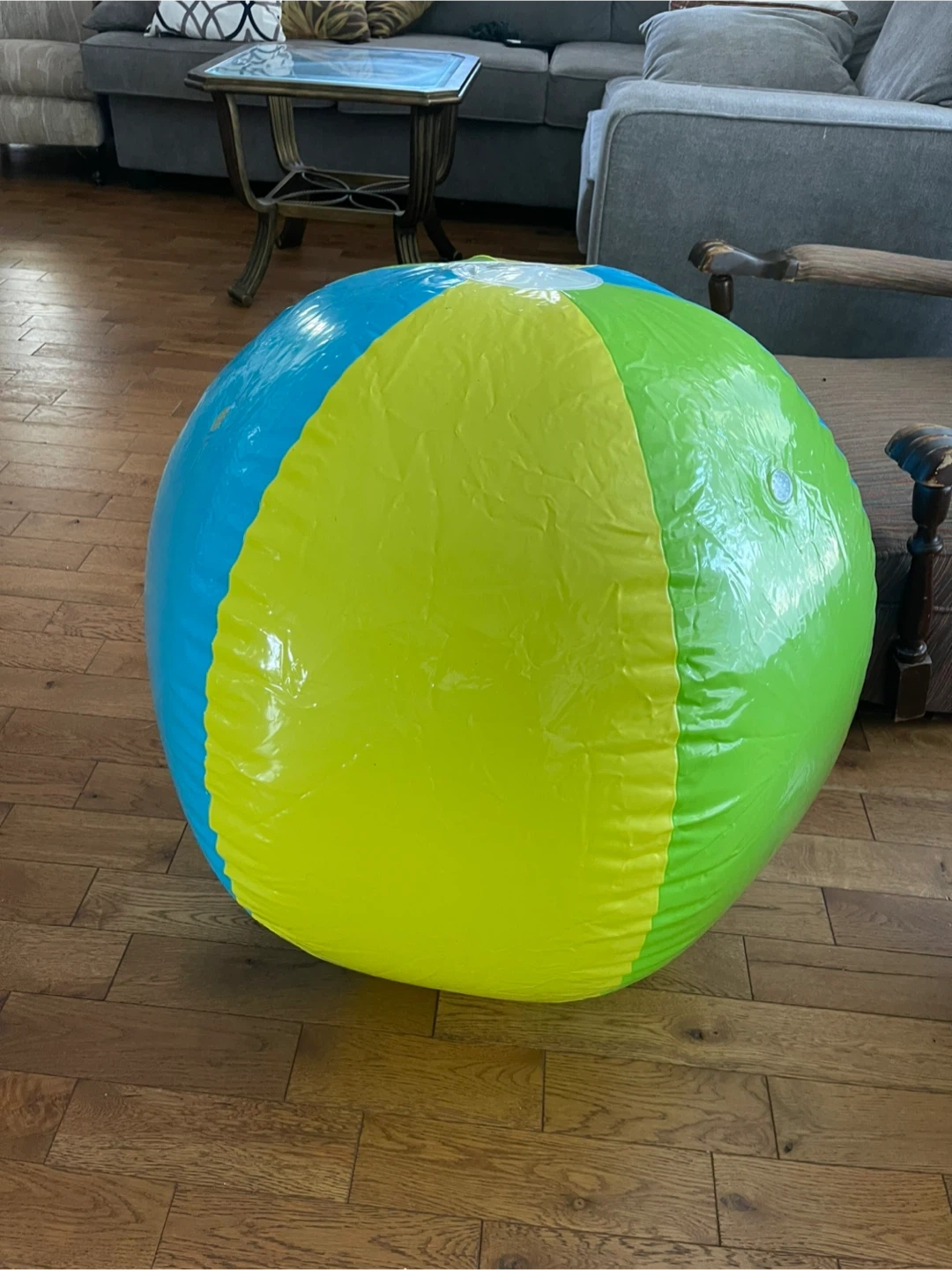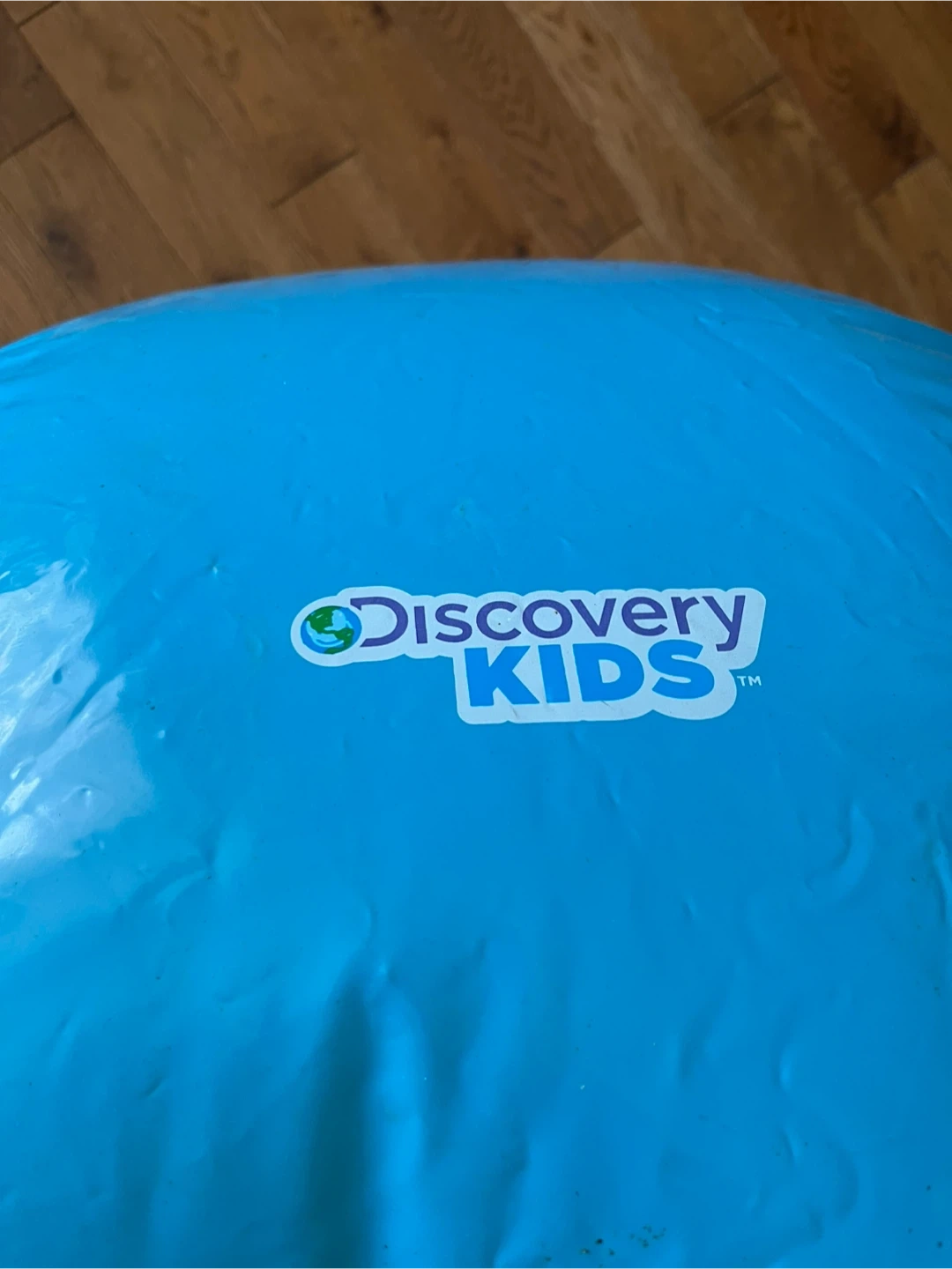 Selling a Discovery Kids beach ball. It's in great shape and ready for some fun in the sun! It has a bright and colourful design with blue, yellow, and green panels. Perfect for the beach or pool